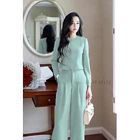 Set áo quần xanh mint cổ tròn NGADO , set áo quần dài , set công sở , dạo phố