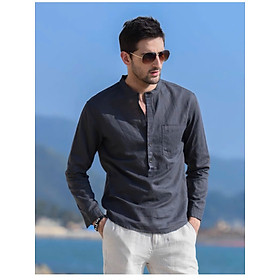 Áo sơ mi nam ngắn tay cổ tàu, áo sơ mi linen, phong cách Hàn Quốc, trang nhã, lịch lãm