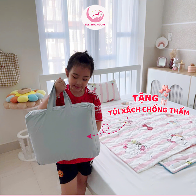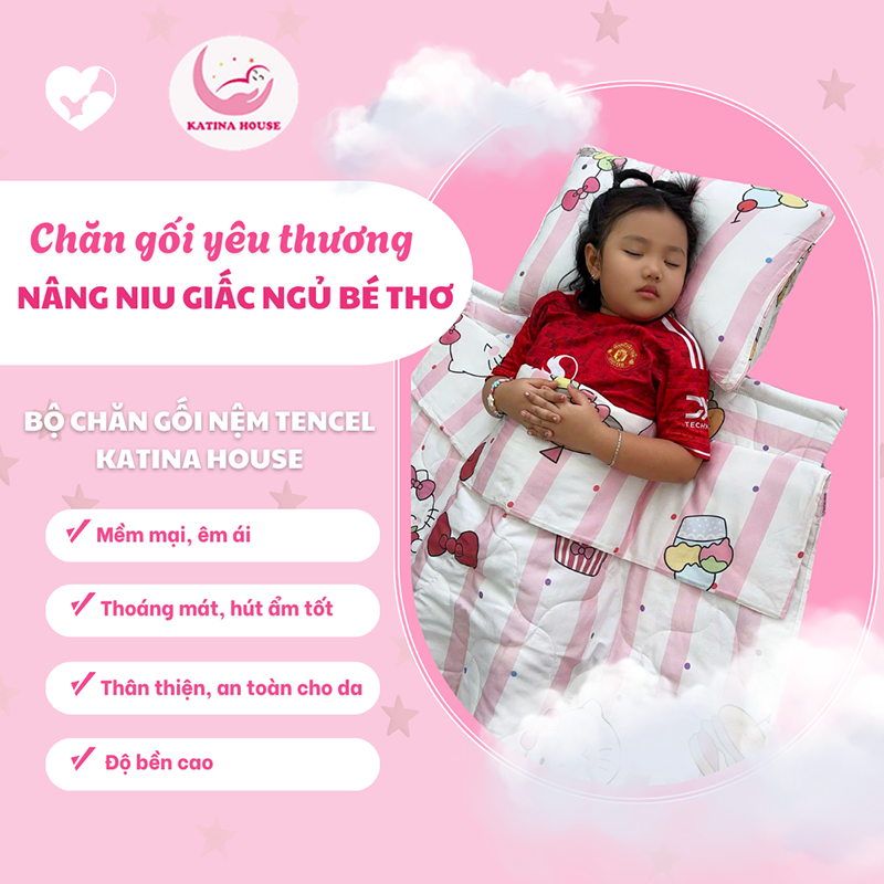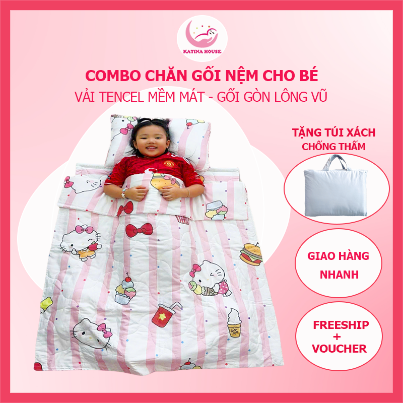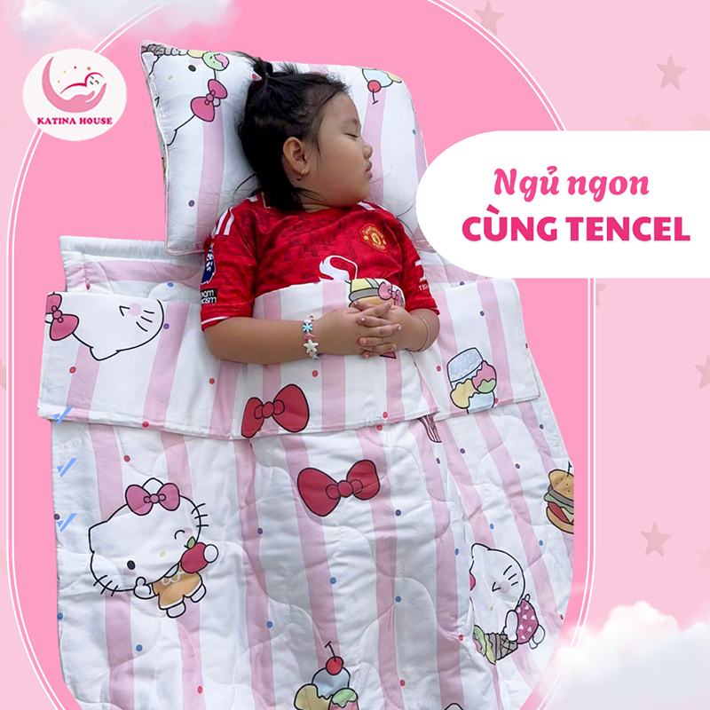 Bộ chăn gối nệm cho bé Katina House, vải Tencel siêu mềm mát, thoáng khí, nệm chống thấm