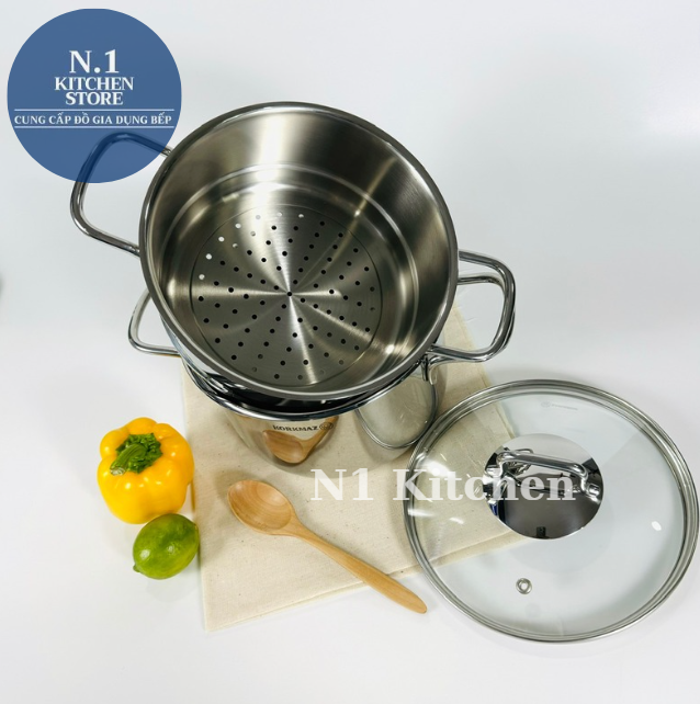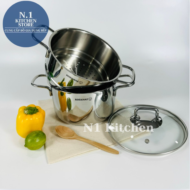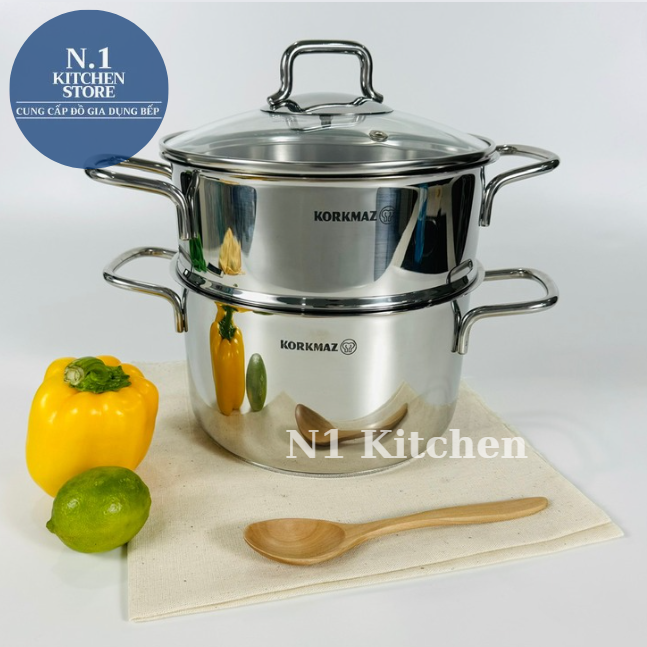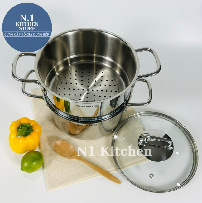 Bộ nồi xửng hấp inox 18/10 Korkmaz Perla Thổ Nhĩ Kỳ, Bảo hành 4 năm - Hàng Chính Hãng