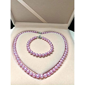 Bộ trang sức Ngọc trai tự nhiên, kèm GIẤY KIỂM ĐỊNH SẢN PHẨM MẪU TẠI SJC LAB, Cỡ hạt 8li, bao gồm Vòng Cổ + Lắc tay + Hoa tai + Hộp lót gấm