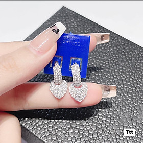 Hoa tai kim cương trái tim tòn ten tròn đính tấm 4 chấu - DHT050