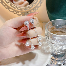 Bông tai bạc tua trai thả dài chất liệu bằng bạc s925 MS68e