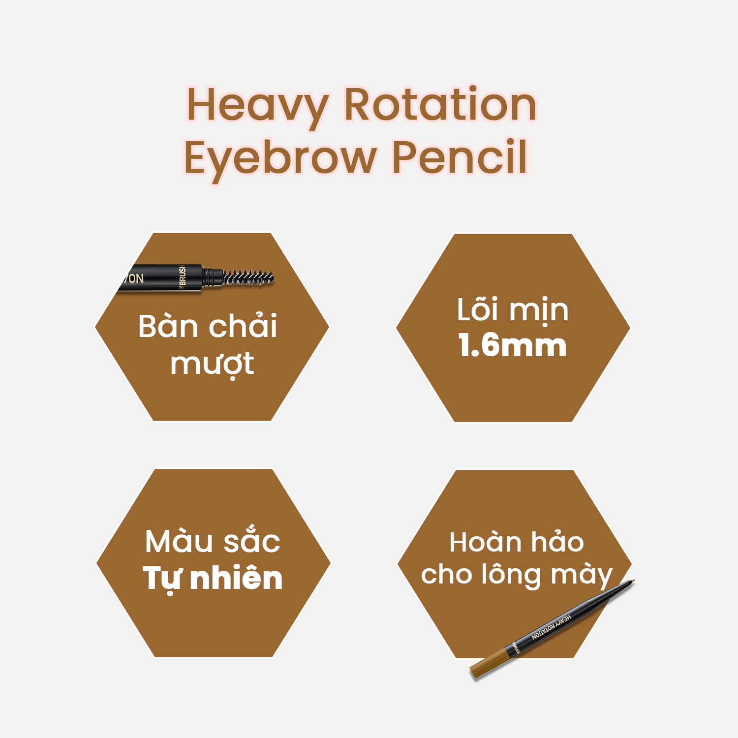 Bút Chì Sáp Kẻ Lông Mày Chống Lem Trôi ,Lõi Siêu Mịn Kissme Heavy Rotation Eyebrow Pencil (0,09g)