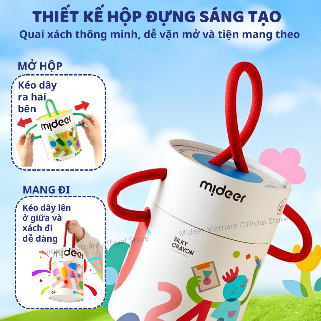 Tại Sao Ba Mẹ Nên Chọn Màu sáp dầu lụa vặn hữu cơ Mideer Silky Crayon kèm quai cho bé 12-24-36 màu