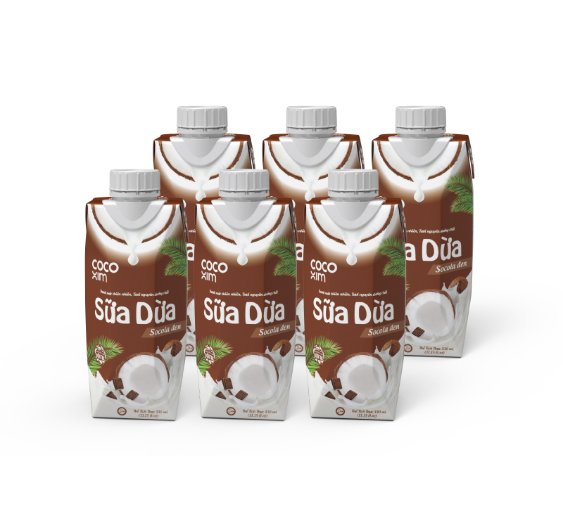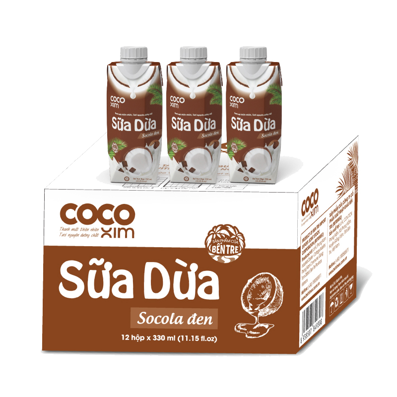Nước trái cây từ dừa tươi nguyên chất 100% kết hợp cùng với Sữa Dừa Socola Đen - Thương hiệu COCOXIM 330ml.