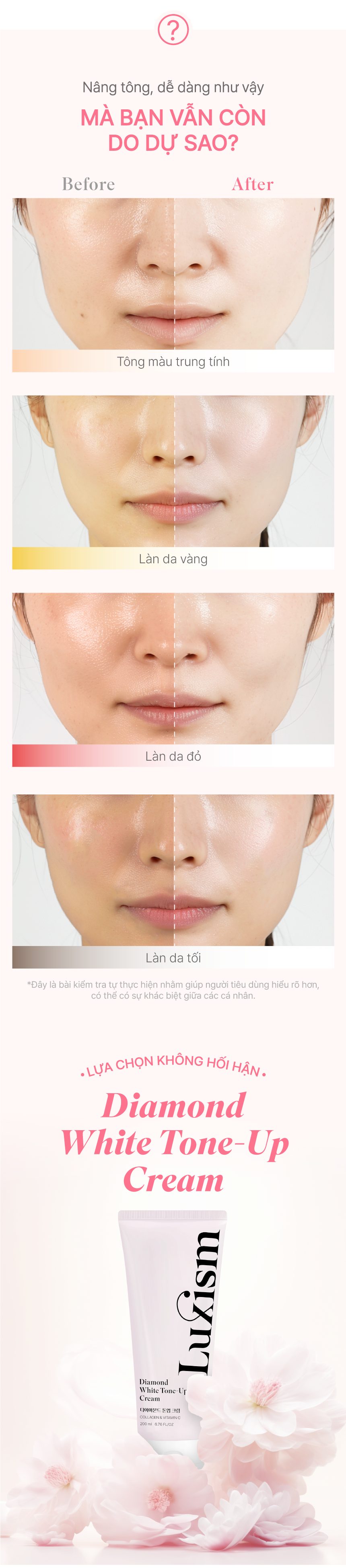 Có được làn da sáng, rạng rỡ một cách nhanh chóng và tự nhiên với Luxism Diamond White Tone-Up Cream.