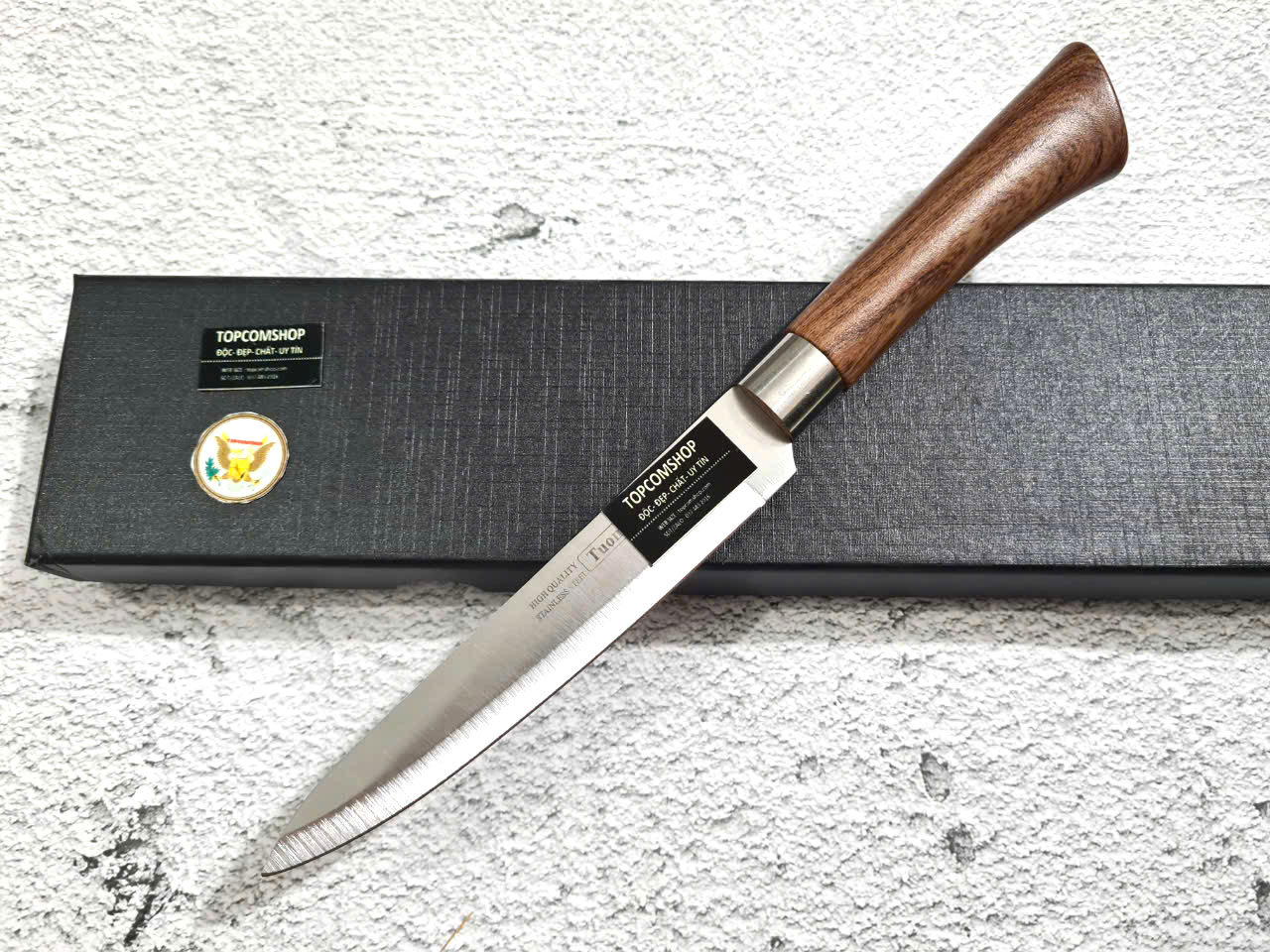 - Cán dao làm từ gỗ c ẩmlai sang trọng, tay cầm cong