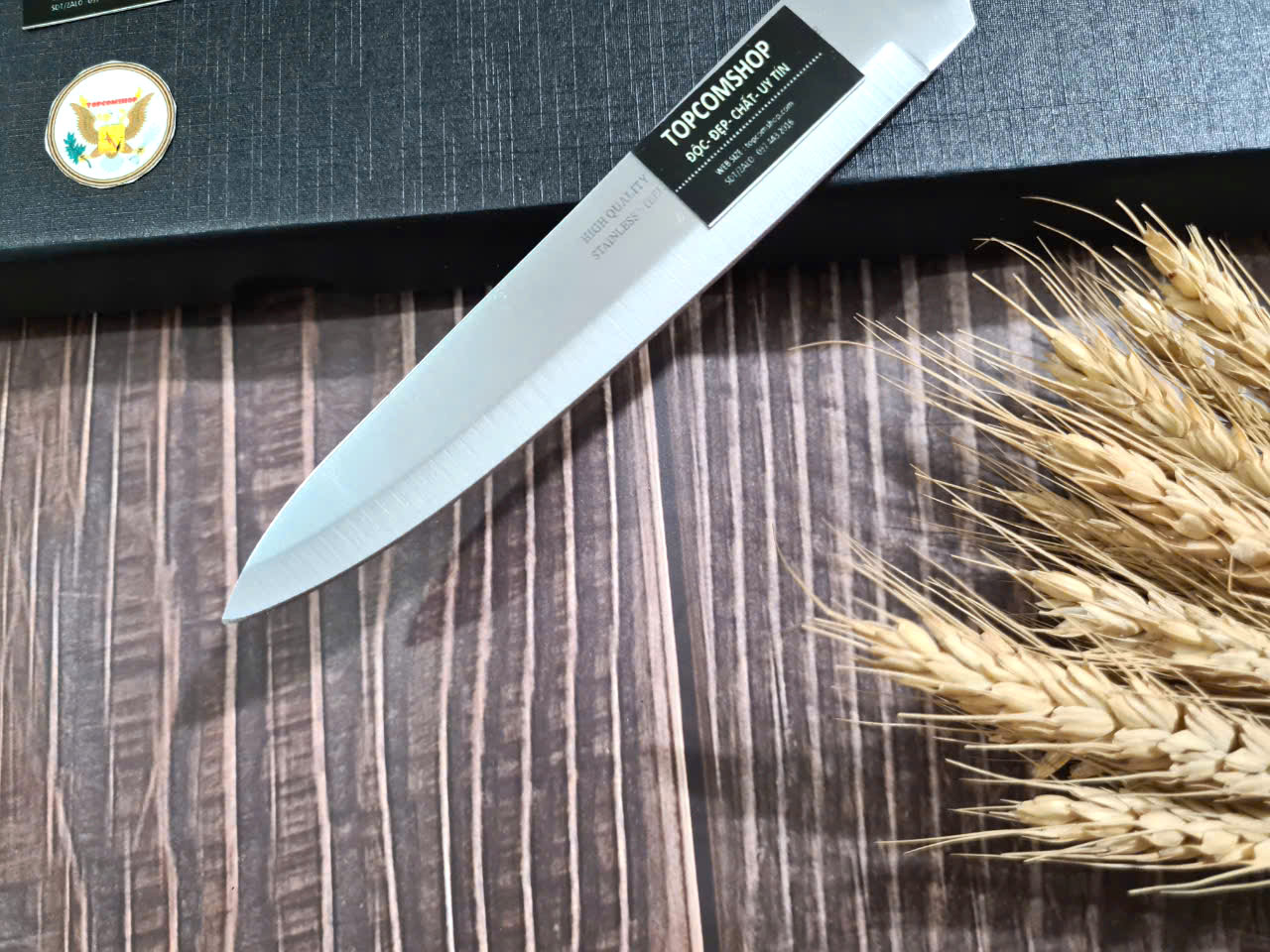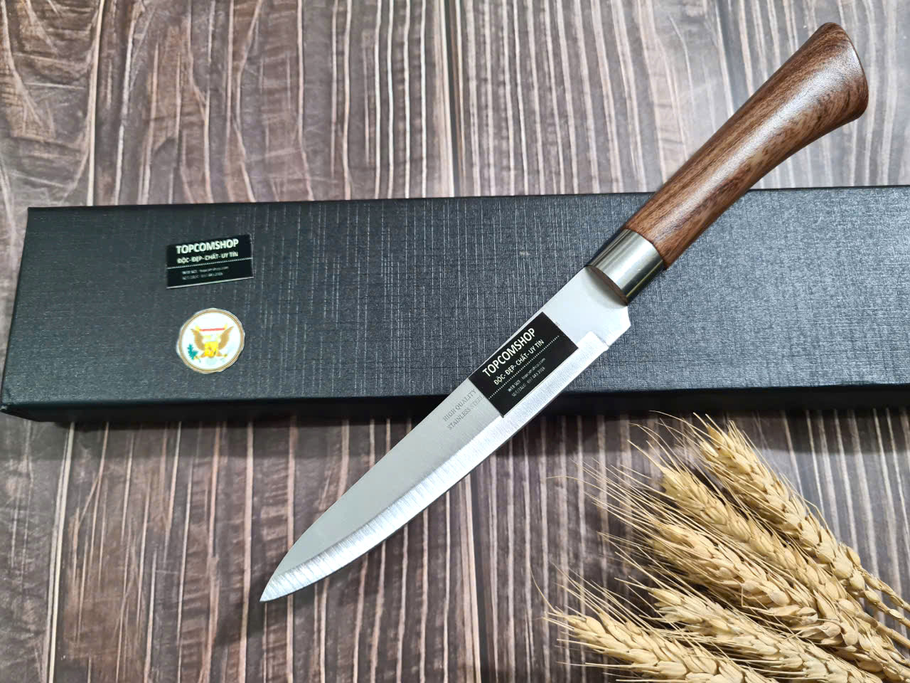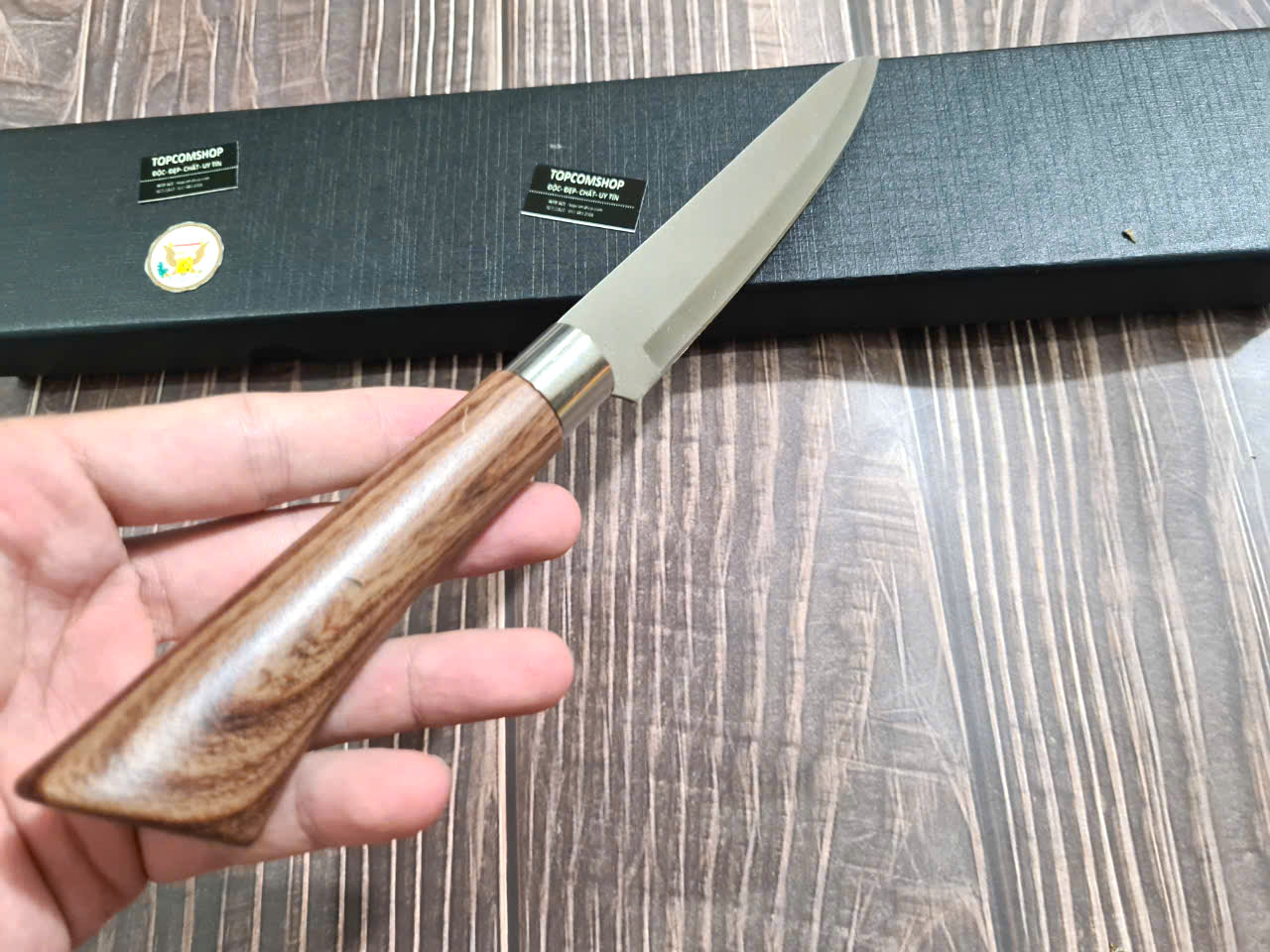 - Cán dao làm từ gỗ c ẩmlai sang trọng, tay cầm cong