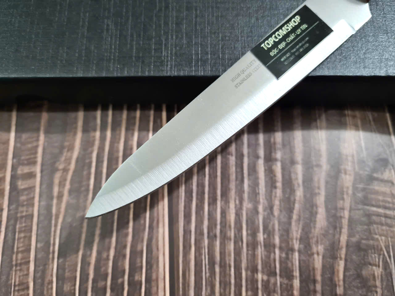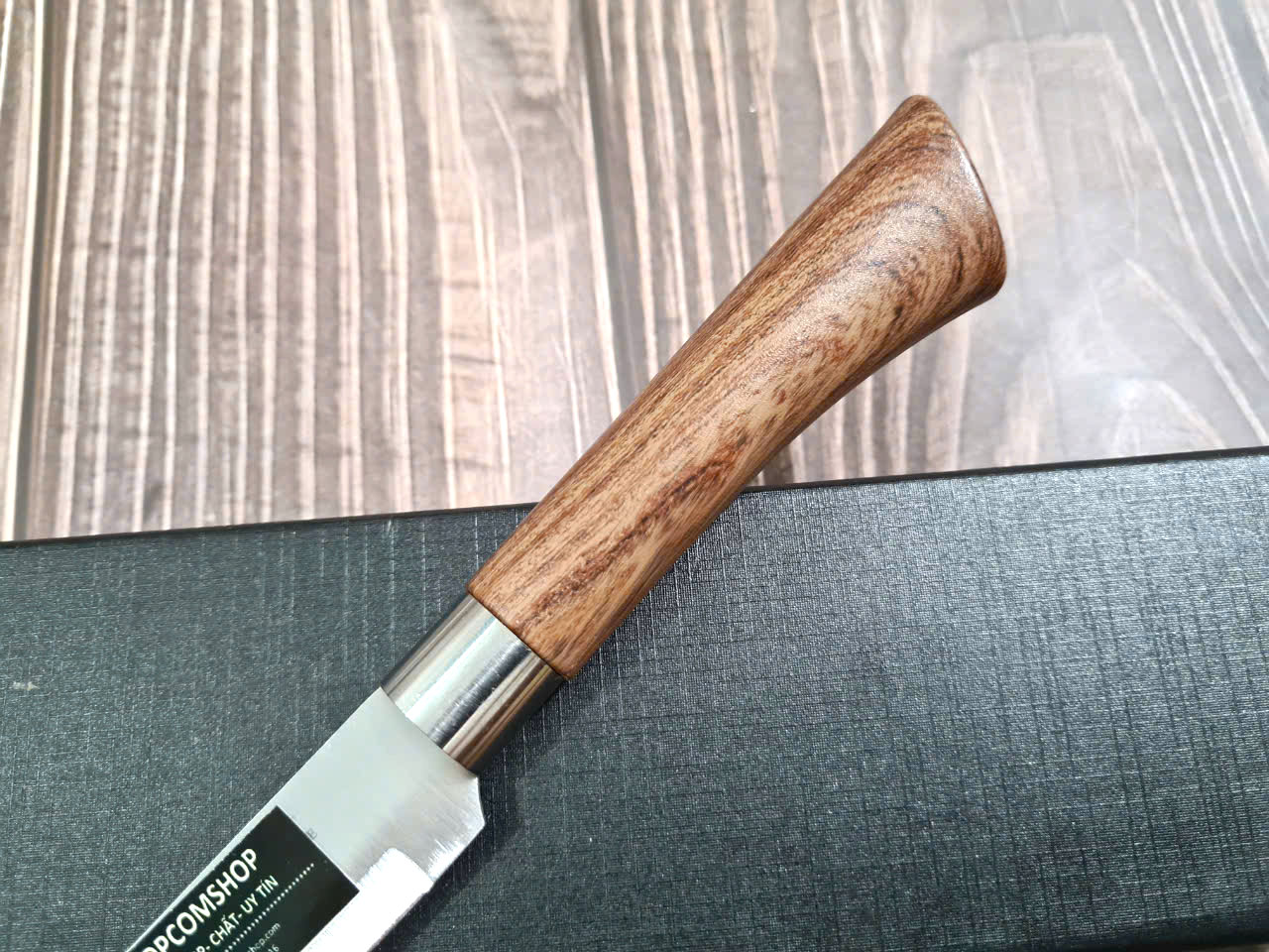 - Cán dao làm từ gỗ c ẩmlai sang trọng, tay cầm cong