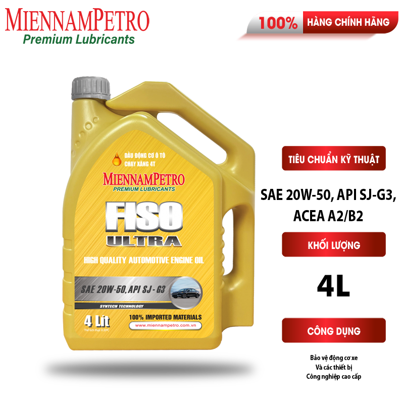 Dầu Nhớt Tổng Hợp MiennamPetro Fiso Ultra 20W-50 API SJ/CF 4L Bảo Vệ Và Chống Ăn Mòn Động Cơ Xe Ô Tô, Xe Khách Cao Cấp
