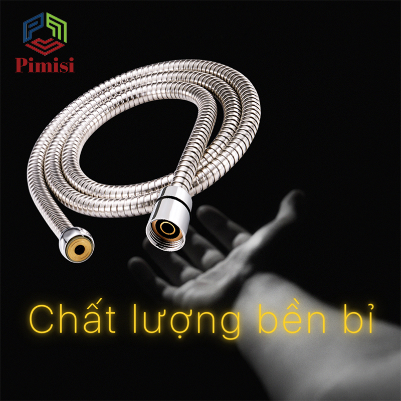 Dây vòi hoa sen tắm nóng lạnh Pimisi bằng inox 304 với đầu dây đồng thau không gỉ phù hợp với mọi sen tắm trong nhà vệ sinh dài 150cm chống xoắn - mạ xi sáng bóng - ống mềm cấp nước và dùng được cho cả vòi xịt nhà vệ sinh phòng tắm | Hàng chính hãng