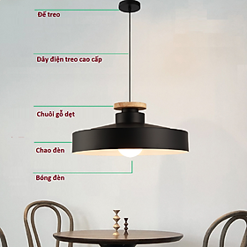 Đèn treo thả trần trang trí phòng khách đầu giường chuôi gỗ hiện đại đen trắng