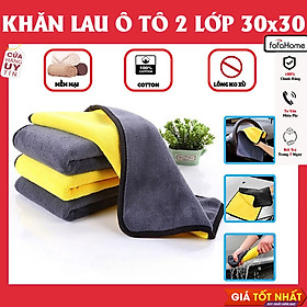 Khăn Lau Xe Chuyên Dụng Ôtô Lau Bếp Lau Kính Microfiber Siêu Thấm Không Bị Sơ Rối 2 Lớp Loại 30x30cm