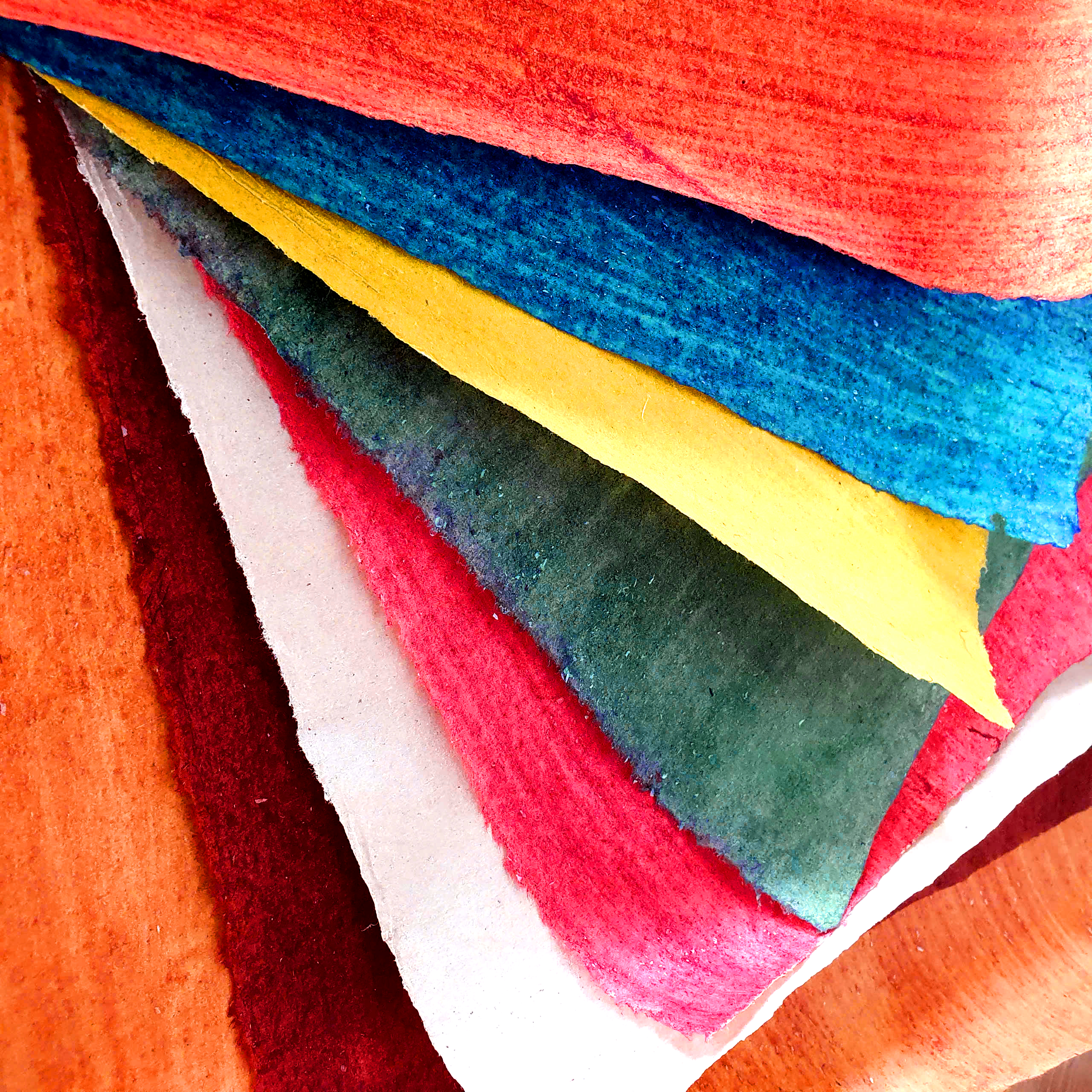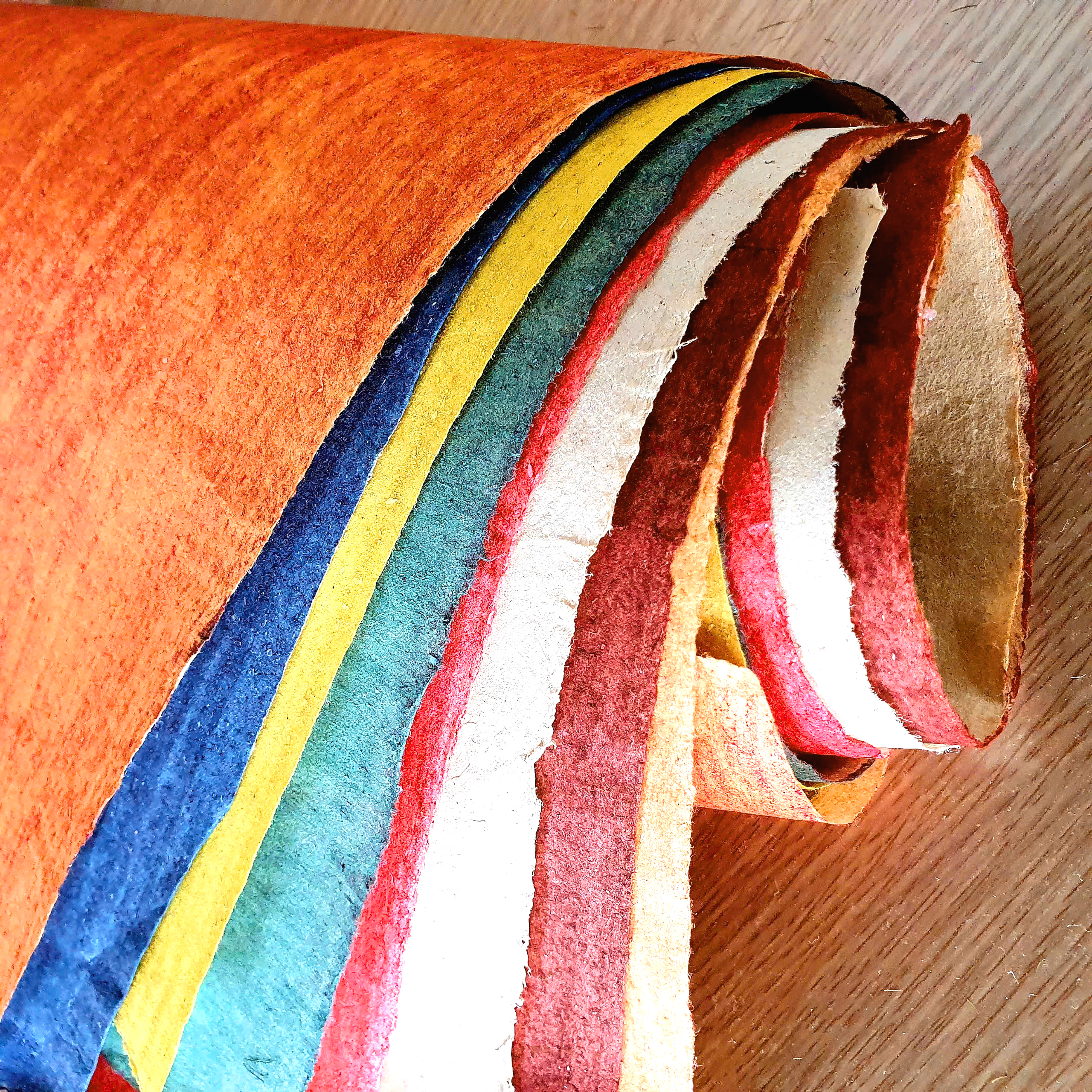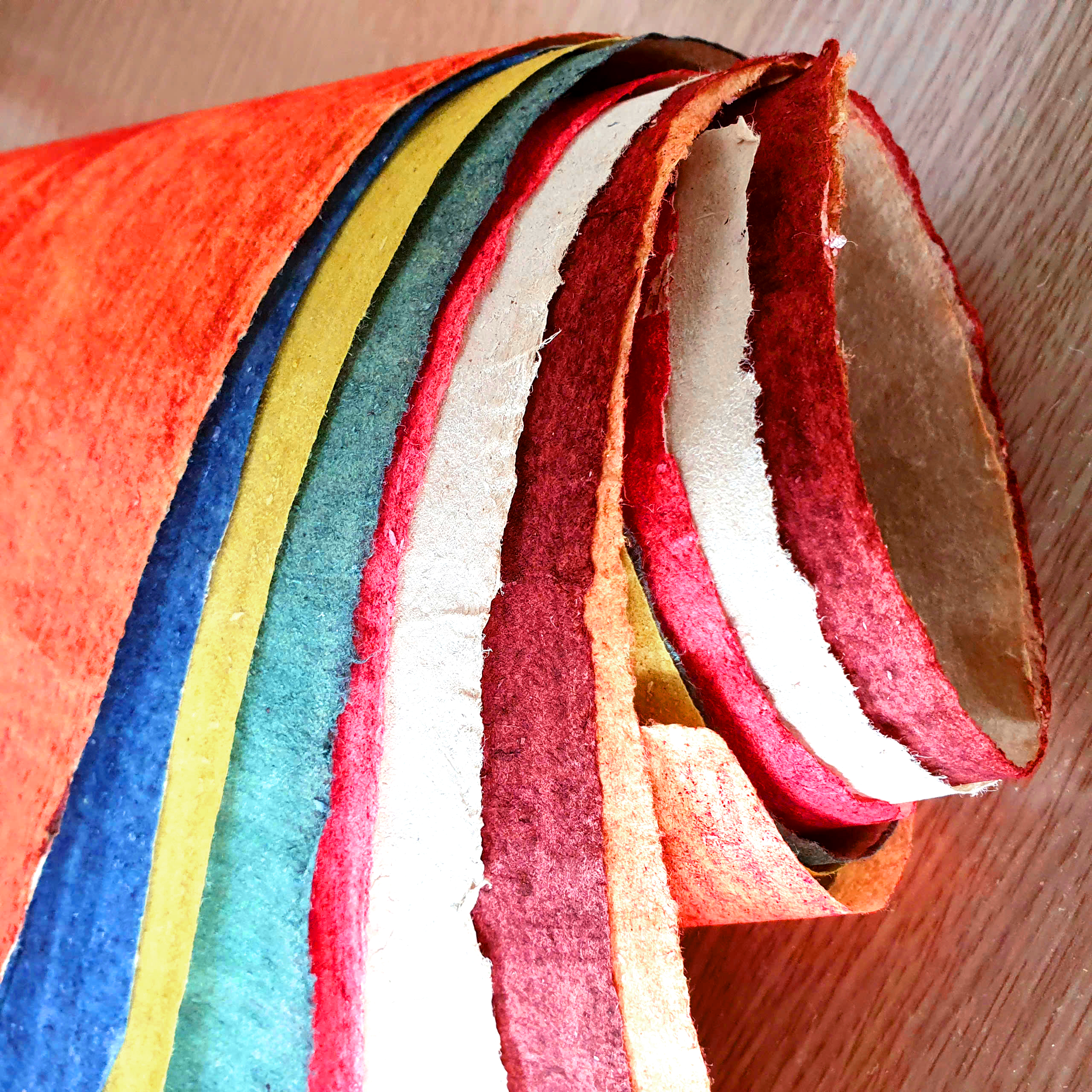 Giấy dó thủ công quét điệp nhuộm màu một mặt.