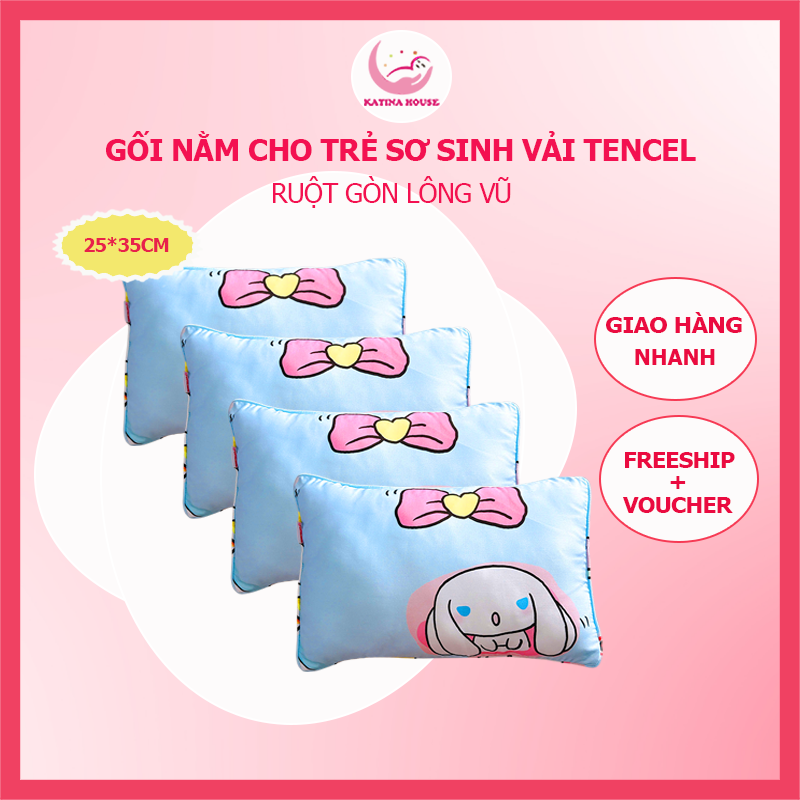 Gối cho trẻ sơ sinh Katina House 0-1t, gối gòn lông vũ vải tencel mịn mát, rất êm mềm