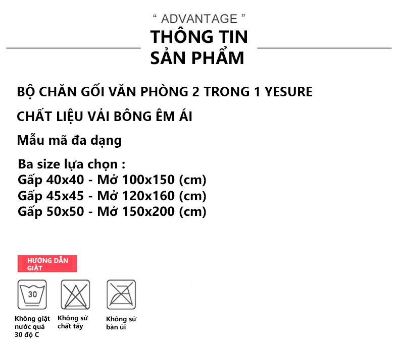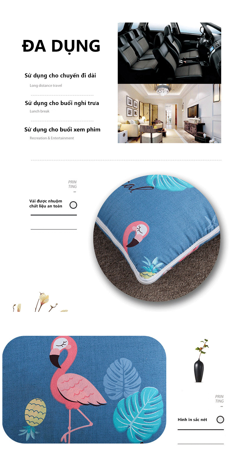 BỘ CHĂN VÀ GỐI CHỈ TRONG MỘT SẢN PHẨM. SẢN PHẨM TÍCH HỢP CẢ CHĂN LẪN GỐI . KHI GẤP KÉO KHÓA VÀO SẼ LÀ GỐI KHI MỞ RA SẼ LÀ CHĂN – dễ dàng cất trong tủ. Rất tiện lợi sử dụng văn phòng, trẻ em, trường học, ô tô…