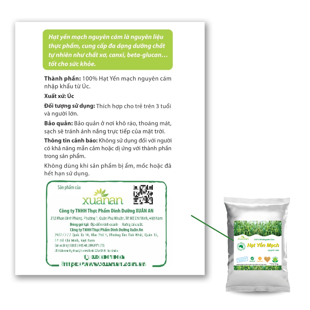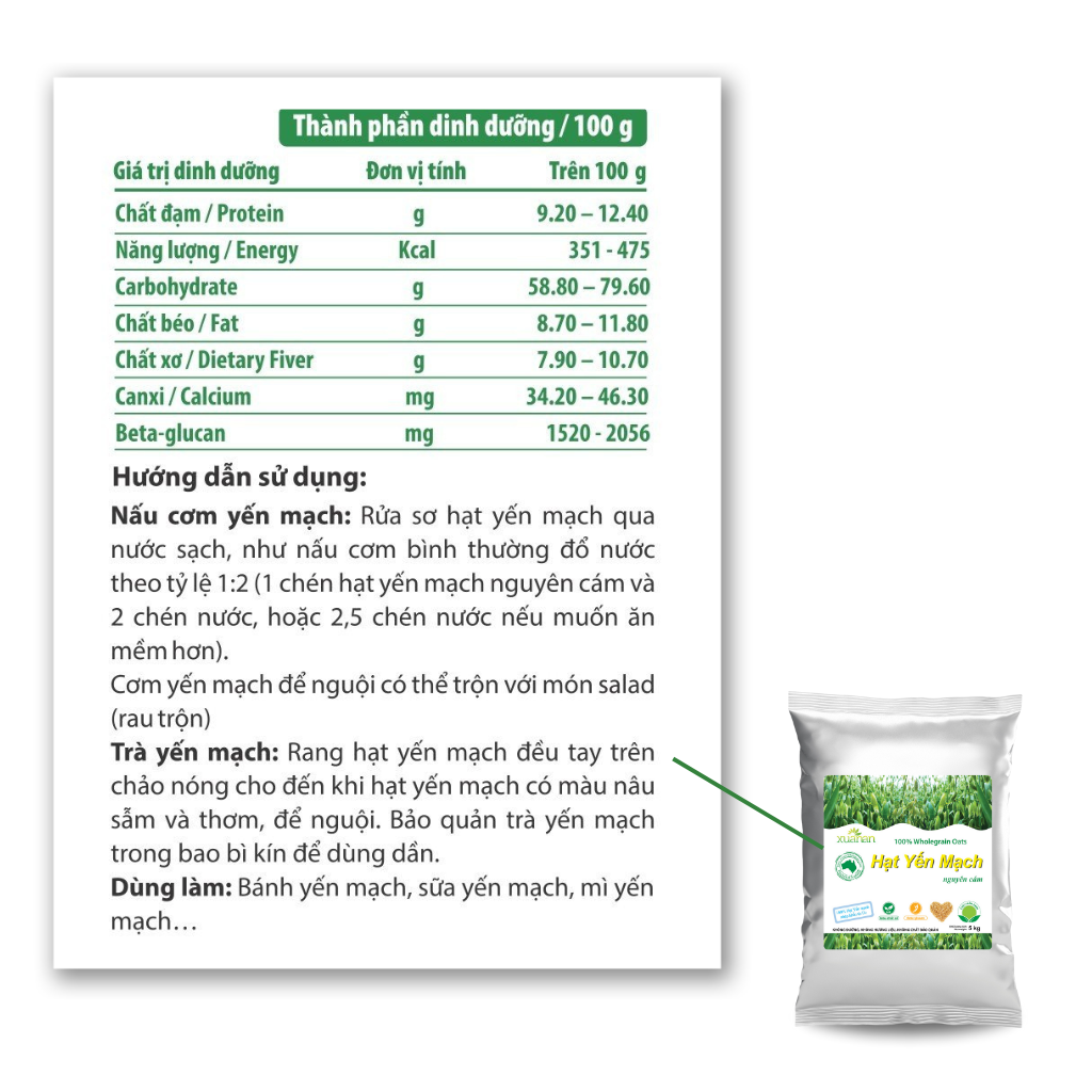 100 % Hạt yến mạch nguyên cám nhập khẩu từ Úc
