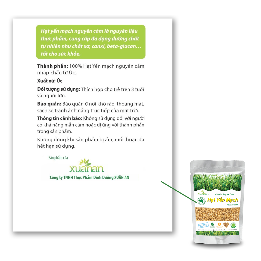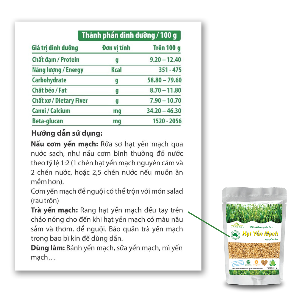 100 % Hạt yến mạch nguyên cám nhập khẩu từ Úc