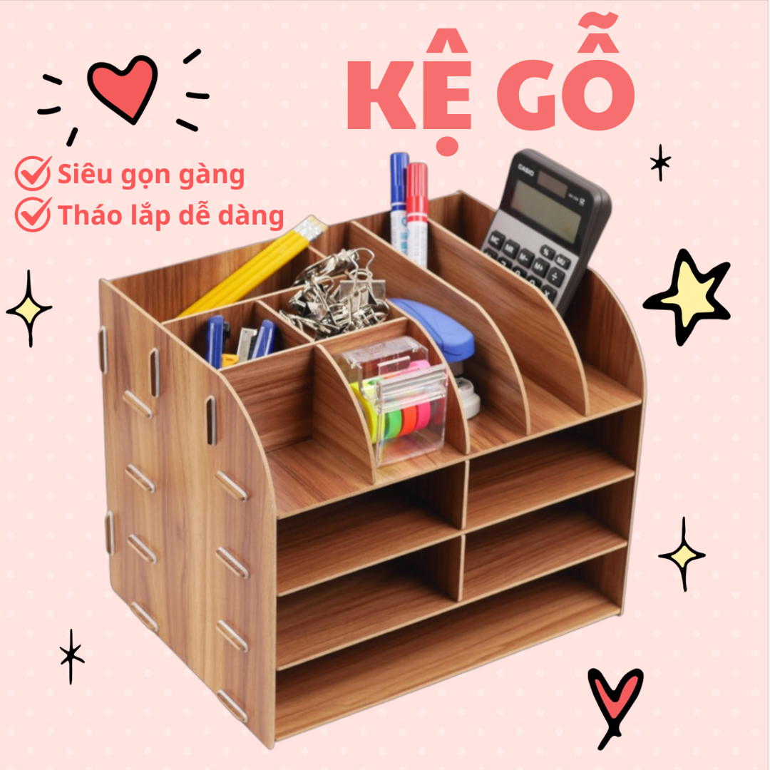 Hộp đựng đồ bằng gỗ đặt ở bàn học hay văn phòng làm việc đựng được nhiều đồ. Sắp xếp đồ đạc ngăn nắp theo các ngăn, mở rộng không gian học tập và làm việc.