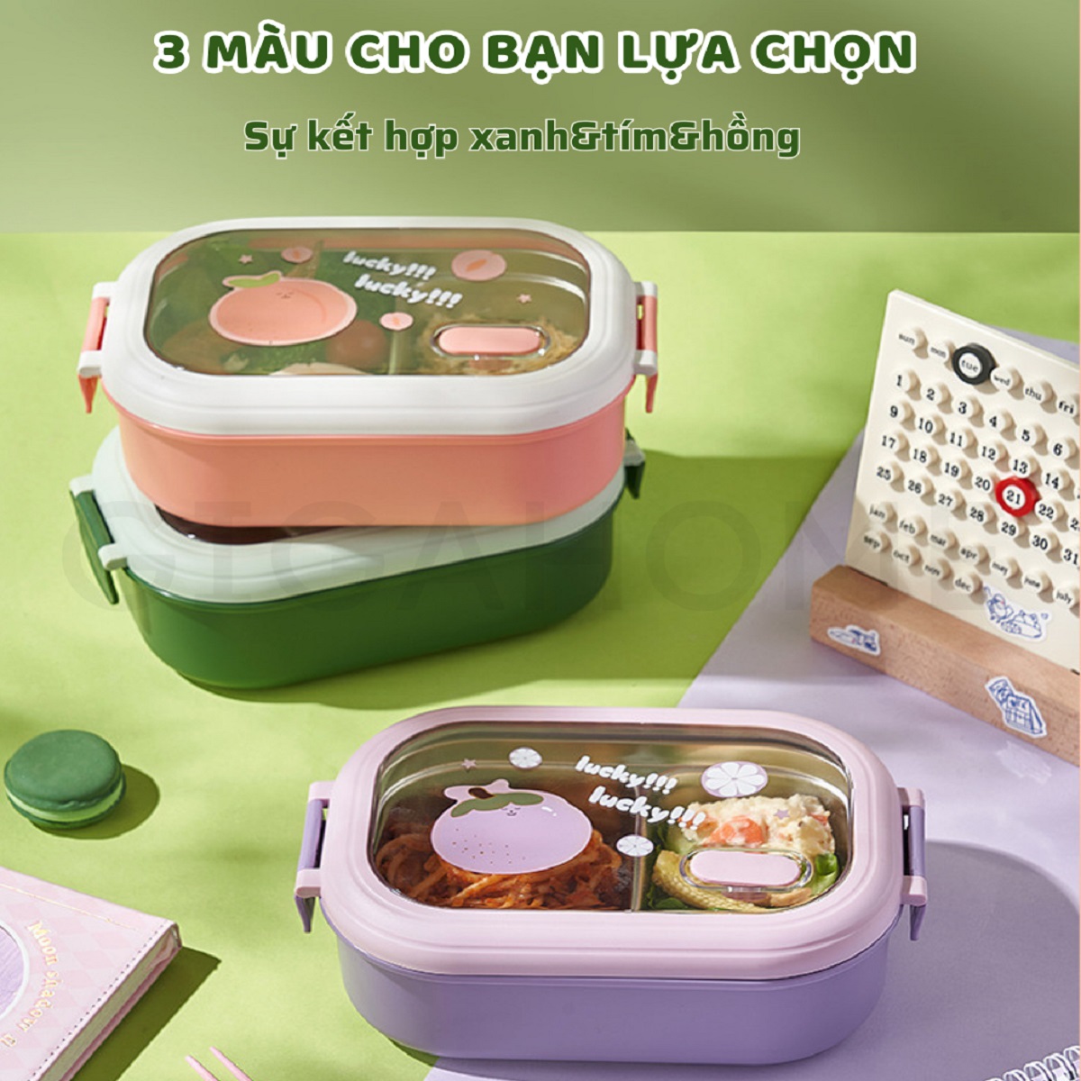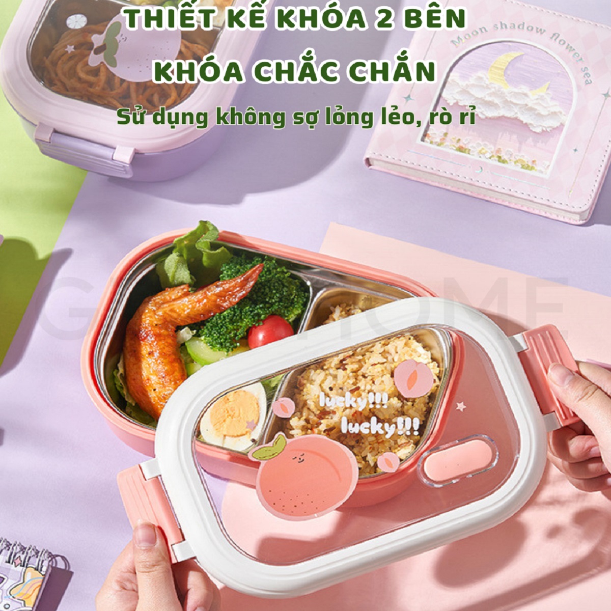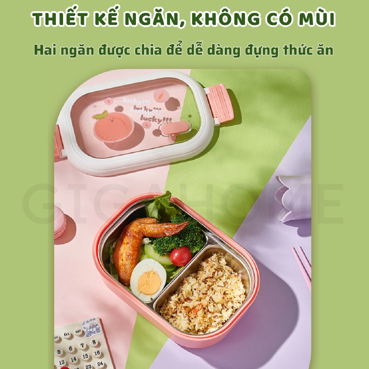 Hộp Cơm Bento Inox 2 Ngăn Giữ Nhiệt Đựng Cơm Văn Phòng, Cho Bé Mang Đi Học, Hộp đựng cơm giữ nhiệt có nắp giữ nhiệt tốt hình vịt vàng