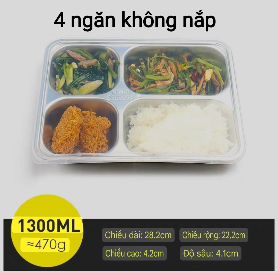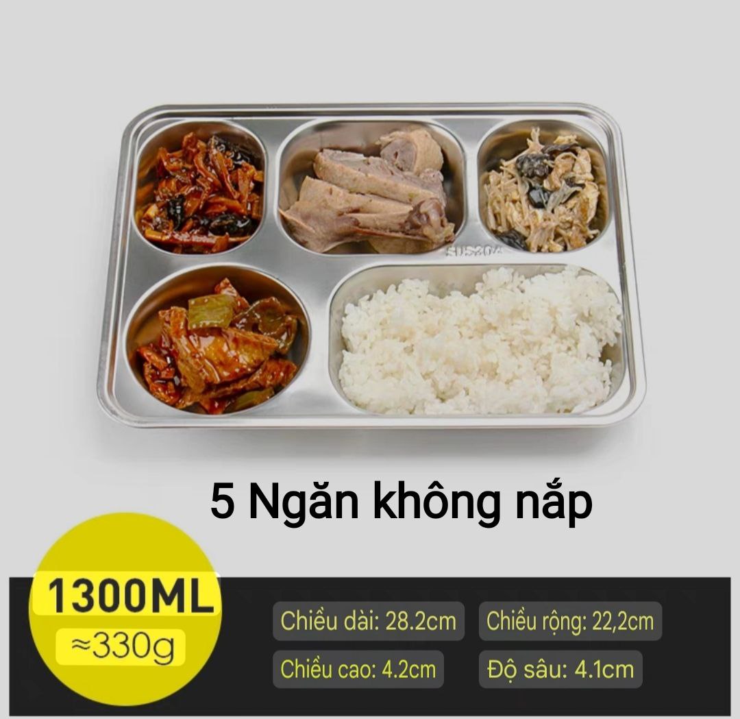Khay Đựng Cơm Thức Ăn Inox 5 Ngăn Và 4 Ngăn sâu lòng - Khay Cơm Inox 304 ( Tùy Chọn Nắp Khay )