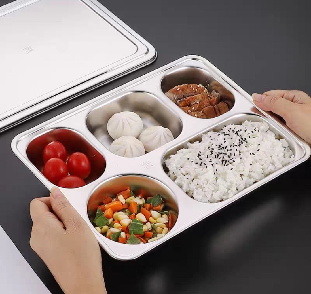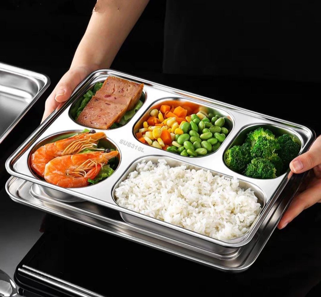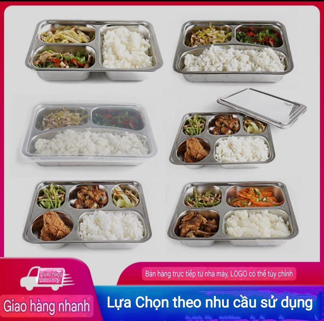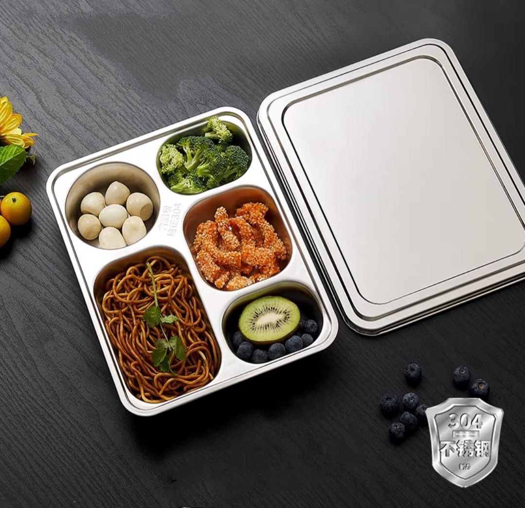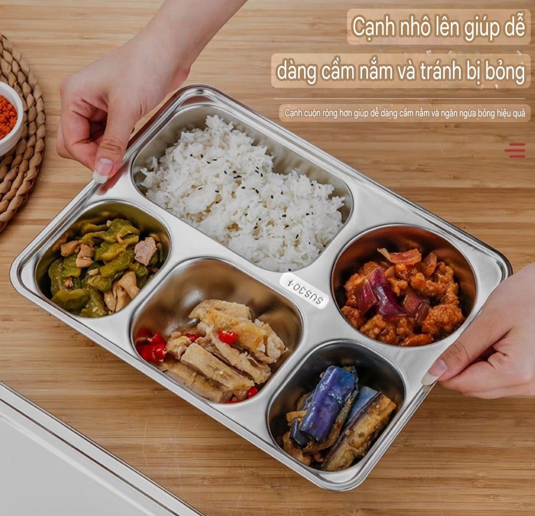Khay Đựng Cơm Thức Ăn Inox 5 sâu lòng - Khay Cơm Inox 304 ( Tùy Chọn Nắp Khay )