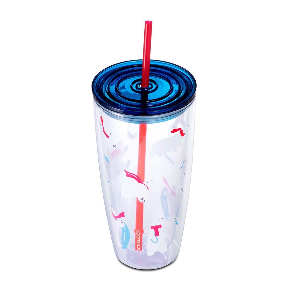 Ly nhựa 2 lớp Lock&Lock màu xanh dương HAP507BLU 750ml - Hàng chính hãng, có ống hút, có nắp đậy - JoyMall