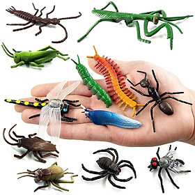 Bộ 12 mô hình Đồ Chơi Côn Trùng giả New4all cho bé bằng cao su mềm, Bọ ngựa Nhện Sâu Kiến Ruồi Rết Châu Chấu Ruồi Dế