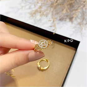 Nhẫn xoàn, Phong cách Âu Mỹ, Màu vàng 18K, Chất liệu hợp kim đính Pha lê tinh thể, mẫu Luxi Green 007M, Kèm hộp đựng Cẩm Tú
