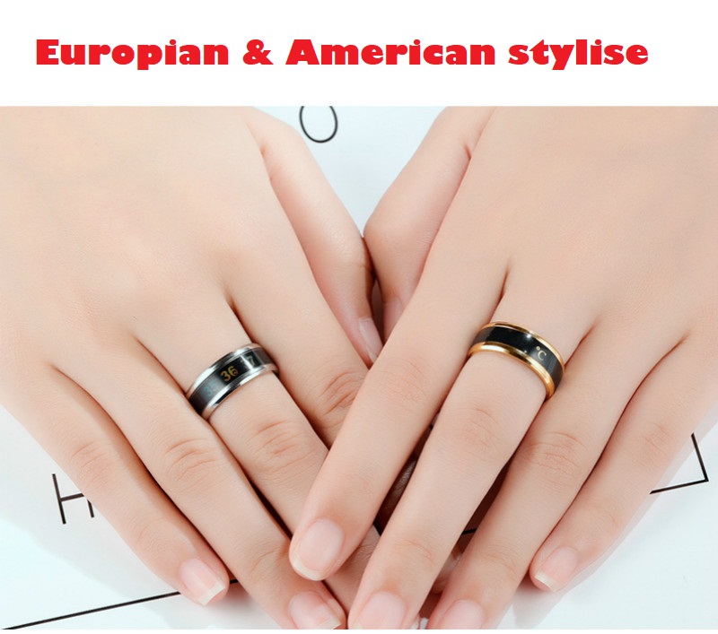 Nhẫn nam nữ, cảm biến nhiệt độ cơ thể, Phong cách âu mỹ, kèm túi Nhung Hồng phát và vòng tay Luminous