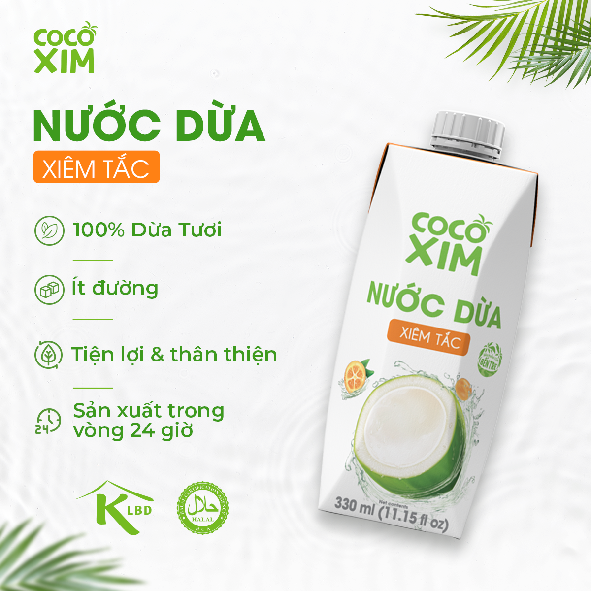 Nước dừa đóng hộp Cocoxim Tắc dung tích 330ml/Hộp