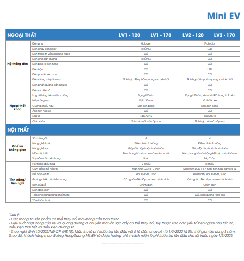 Phiếu đặt cọc [LV1-170 Km] Ô tô điện Wuling Mini EV