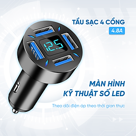 Tẩu Sạc 4 Cổng USB 4.8A | Tẩu Sạc 4 Cổng USB Sạc Được Nhiều Thiết Bị Cùng Lúc, Tương Thích Với Nhiều Thiết Bị