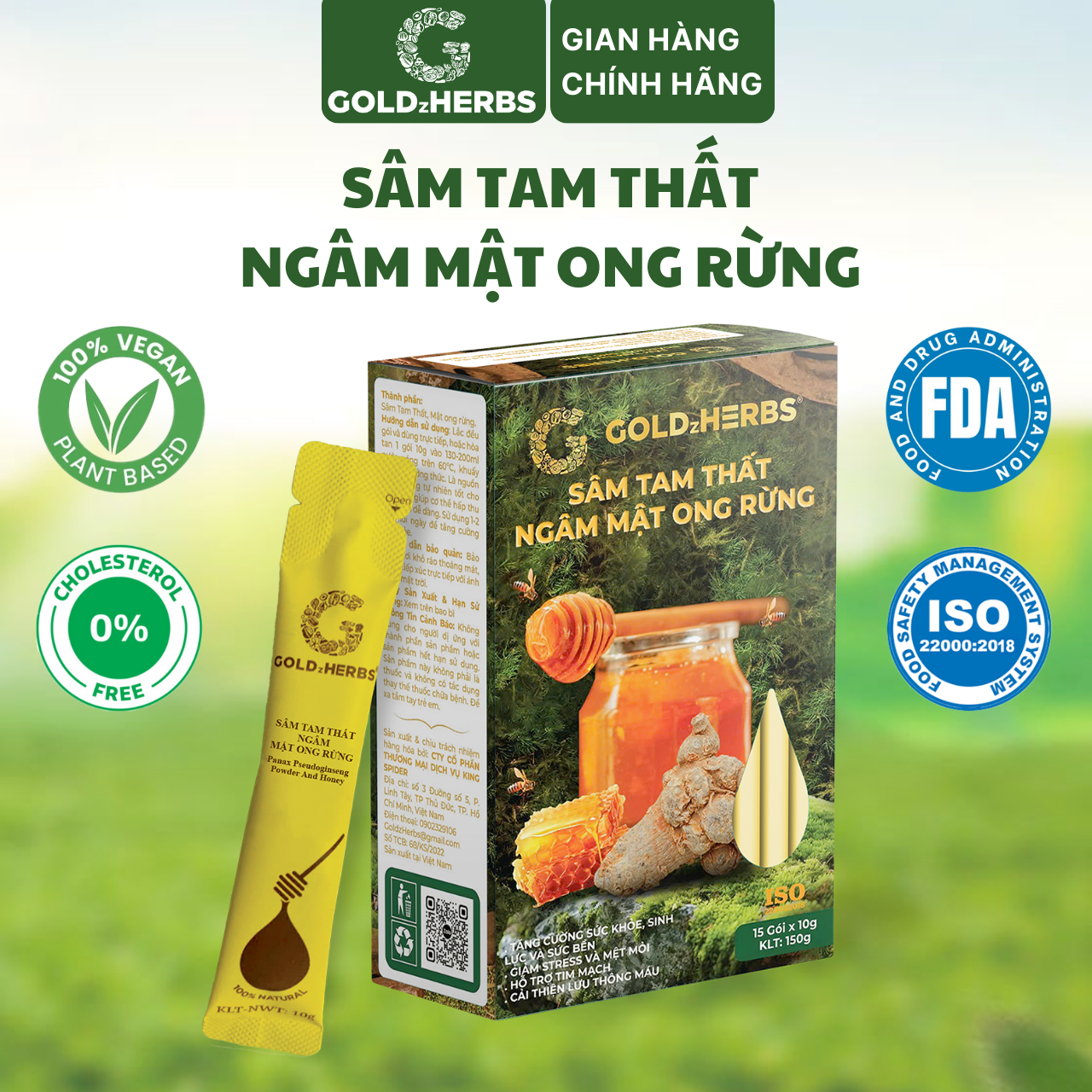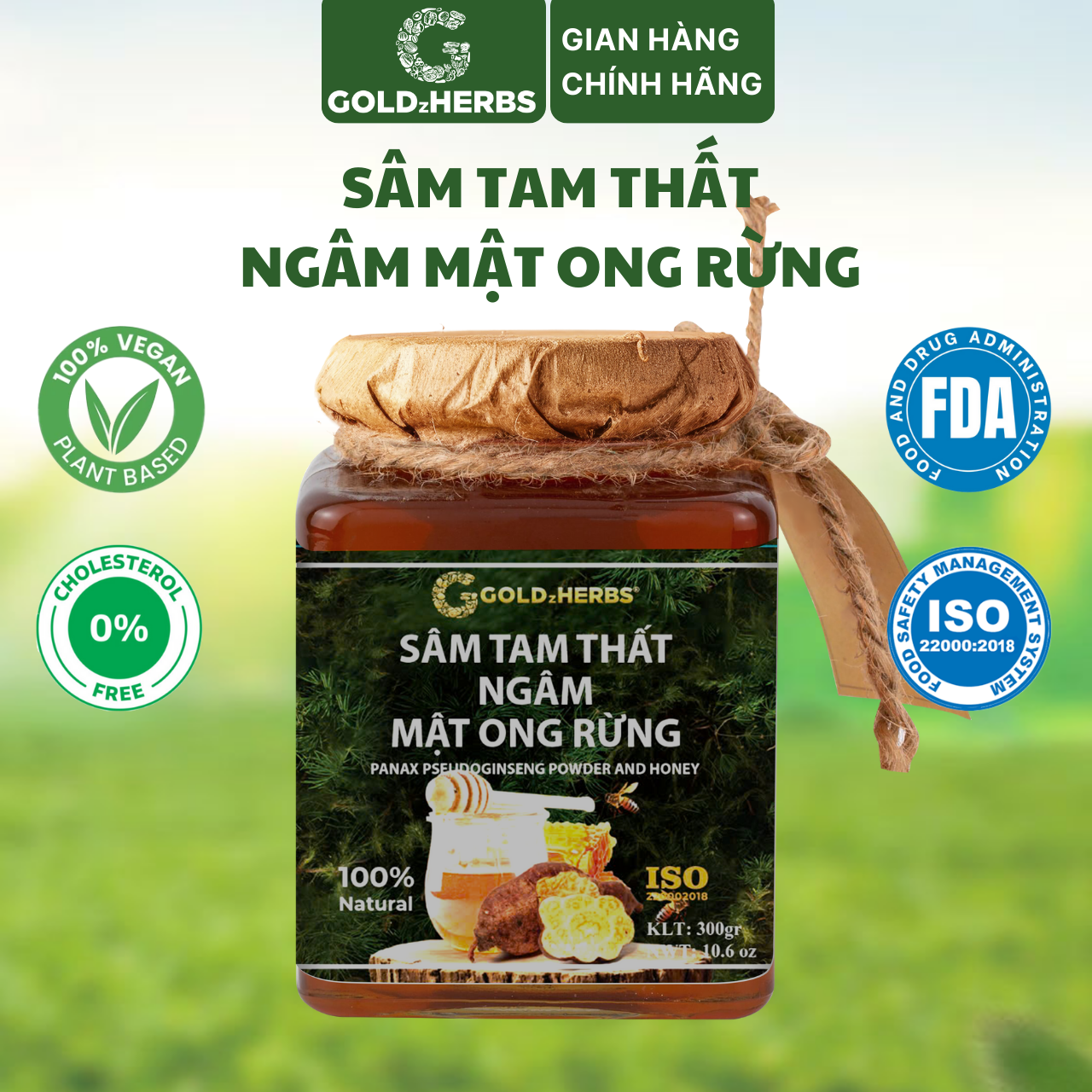Sâm tam thất ngâm mật ong rừng GoldzHerbs, 100% mật ong nguyên chất – Hũ 300g/ Hộp 15 gói