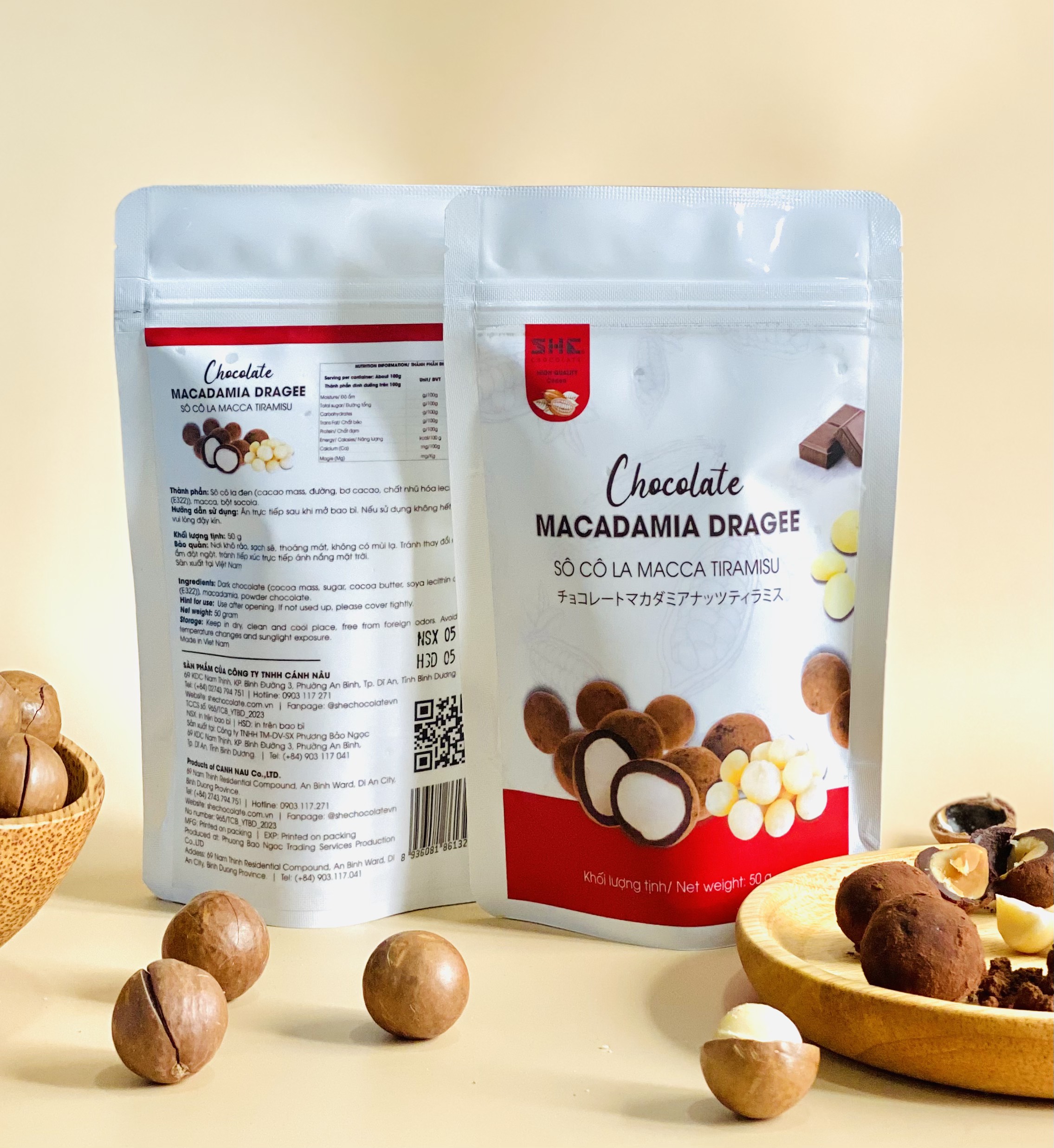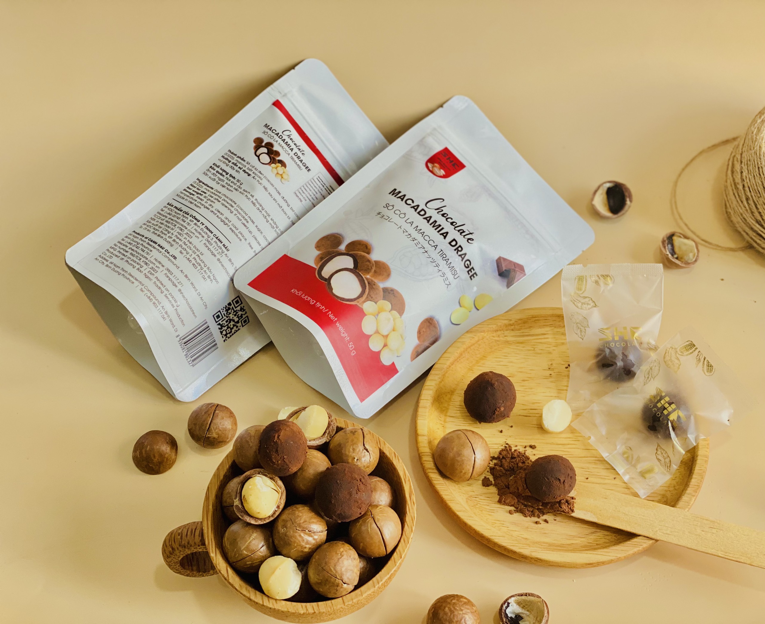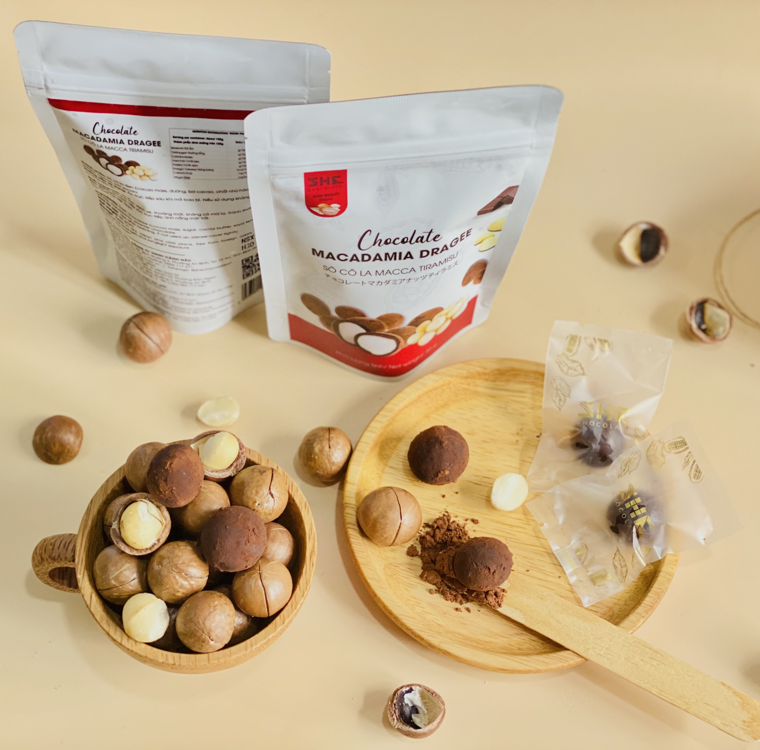 Socola Macca Tiramisu - Túi 50g - SHE Chocolate - Tốt cho sức khỏe - Quà tặng người thân, dịp lễ, thích hợp ăn vặt