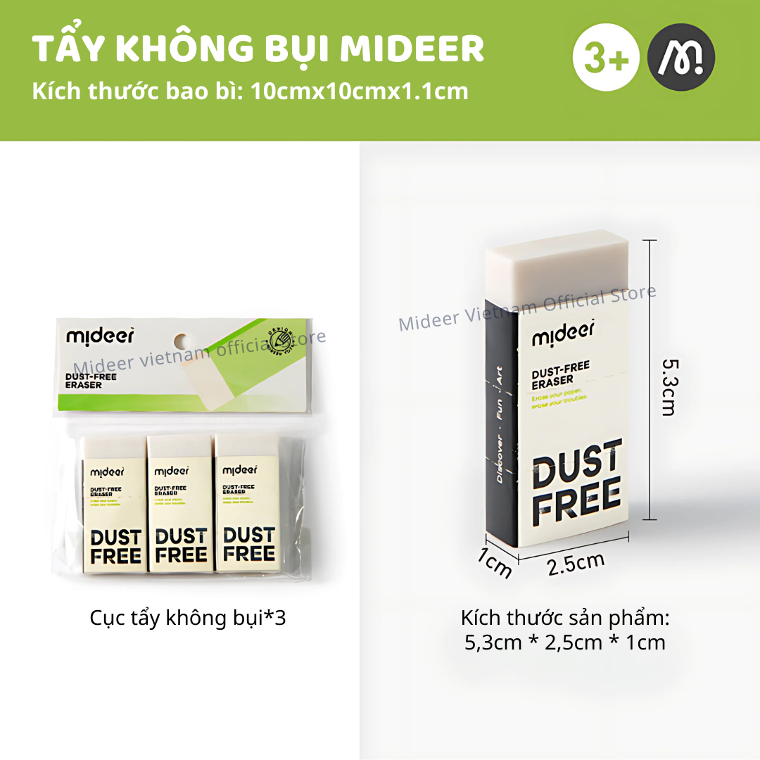Tẩy bút chì siêu sạch, gôm tẩy không vụn Mideer Dust-free Eraser