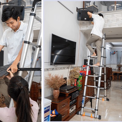 Thang Nhôm Rút Chữ A Sumika SK380D - Chữ A cao 1.9m, chữ I cao 3.8m, tải trọng 300kg - Luôn Có Phụ kiện Thay Thế