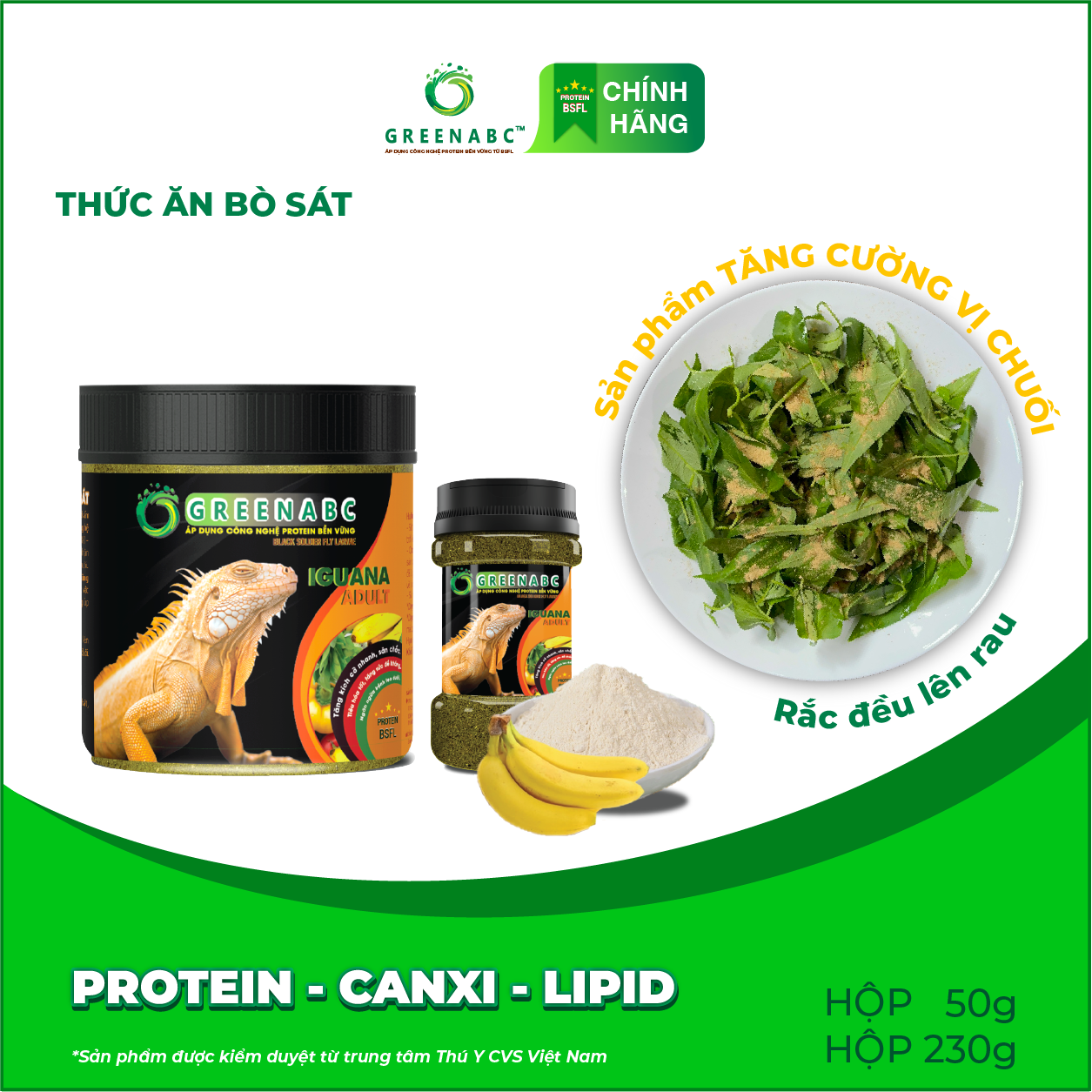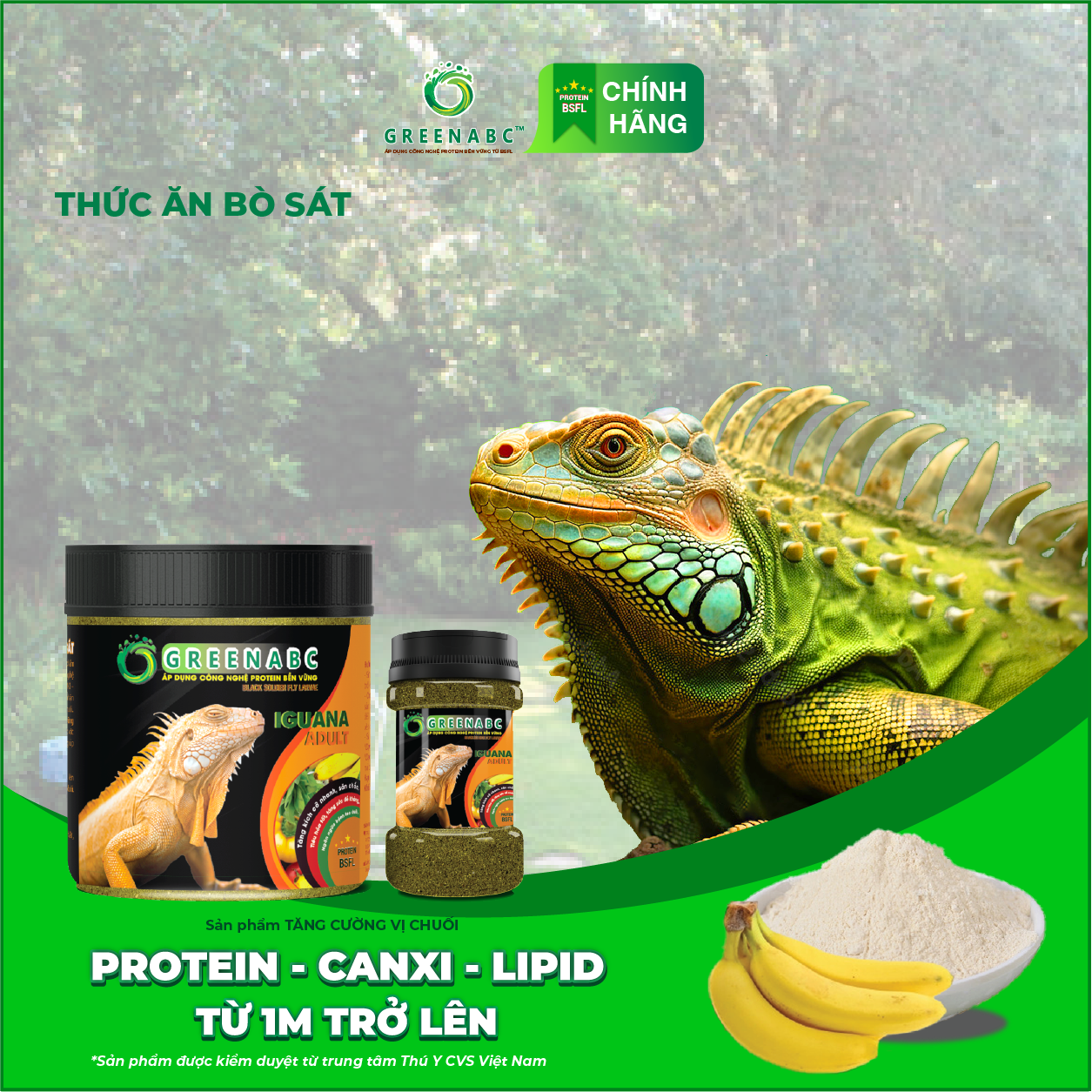 Thức ăn bò sát Iguana Trưởng Thành GREENABC vị chuối dùng cho Iguana từ 1m trở lên giúp gai bung, gù cao, dáng đẹp, lên màu tươi - Hộp 230g
