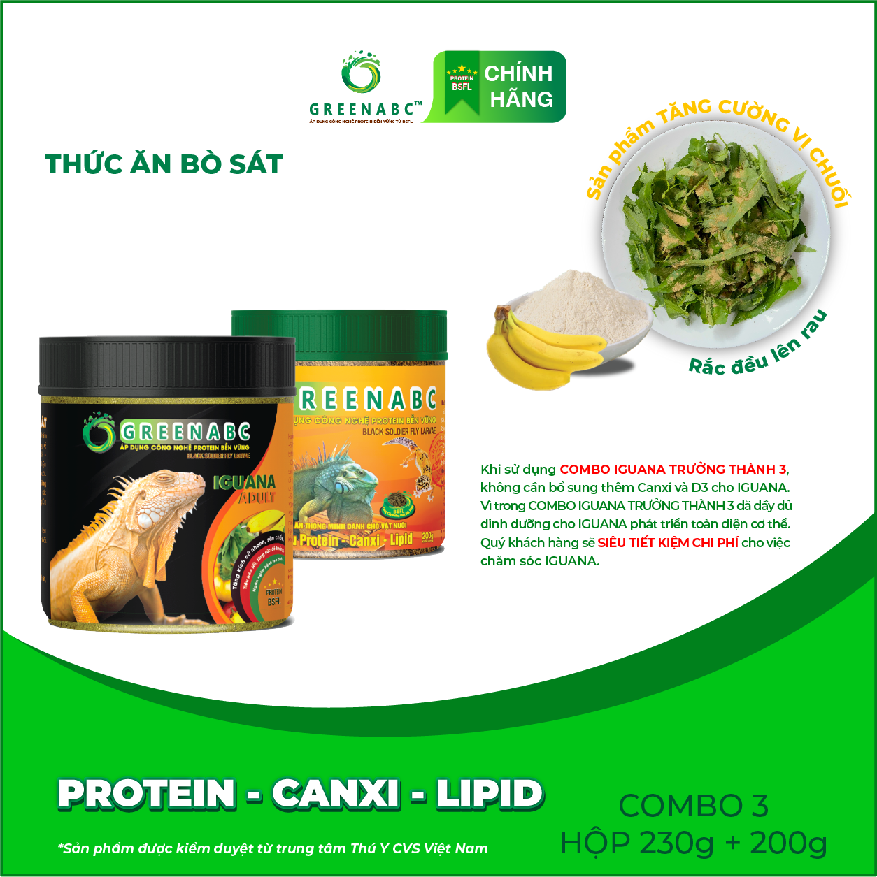 Ghi chú: Khi sử dụng combo Iguana trưởng thành 3, KHÔNG CẦN BỔ SUNG THÊM CANXI và D3 cho Igu, vì trong combo Igu trưởng thành 3 đã đầy đủ lượng Canxi cho Igu phát triển. Quý Khách Hàng sẽ SIÊU TIẾT KIỆM CHI PHÍ cho việc chăm sóc cho Igu
