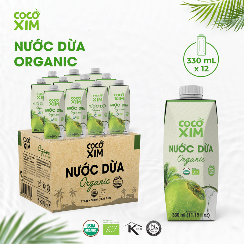 Thùng 12 Hộp Nước dừa đóng hộp Cocoxim Organic dung tích 330ml/Hộp