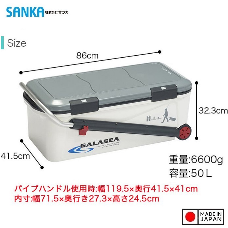 Thùng đá giữ nhiệt đa năng, tay kéo Sanka Galasea 50L, bền đẹp và an toàn cho thời gian sử dụng lâu dài -nội địa Nhật Bản