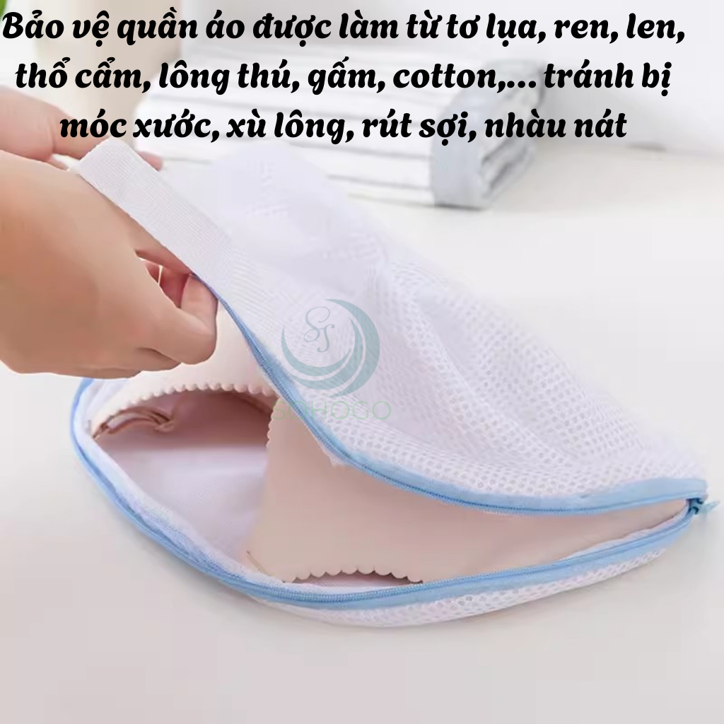 - Túi lưới giặt đồ là sản phẩm tiện dụng với dây kéo, chất lượng lưới cao cấp. Sản phẩm dùng cho máy giặt nhằm bảo vệ quần áo được làm từ tơ lụa, ren, len, thổ cẩm, lông thú, gấm, cotton,… tránh bị móc xước, xù lông, rút sợi, nhàu nát... làm hỏng quần áo trong quá trình giặt.