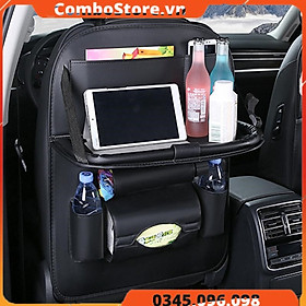 Túi da đựng đồ đa năng treo sau ghế Ô tô, Xe hơi – Tích hợp bàn ăn tiện lợi
