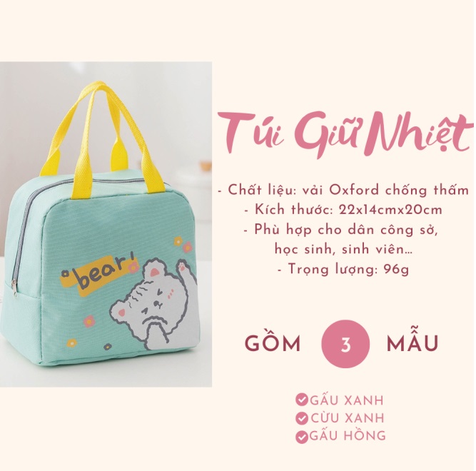 Túi giữ nhiệt giữ ấm đồ ăn đựng hộp cơm khi mang đi làm đi học