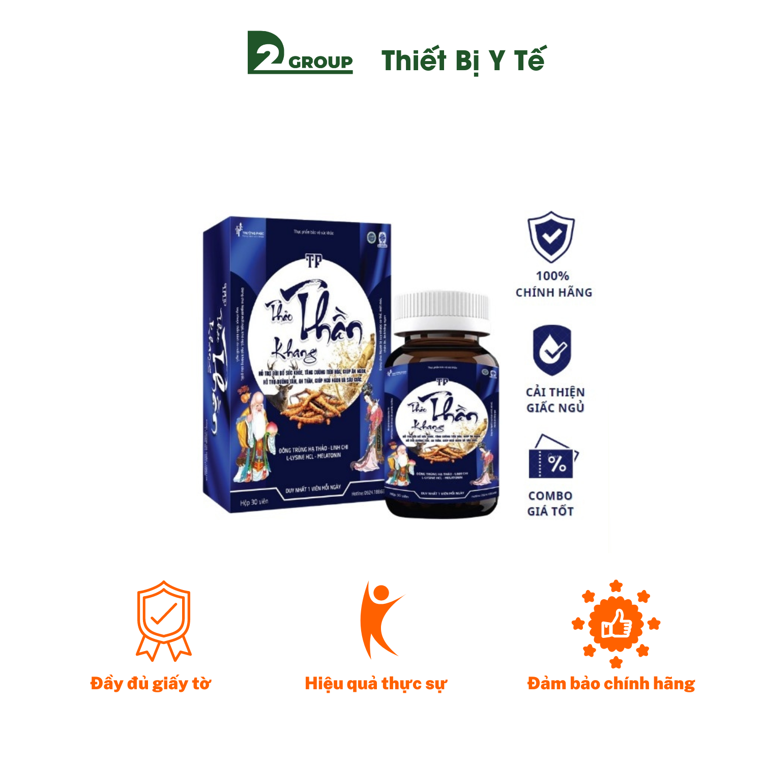 Viên uống dưỡng tâm an thần THẢO THẦN KHANG, giúp ăn ngon ngủ tốt, thành phần đông trùng hạ thảo và nhung hươu hộp 30 viên- D2 Group