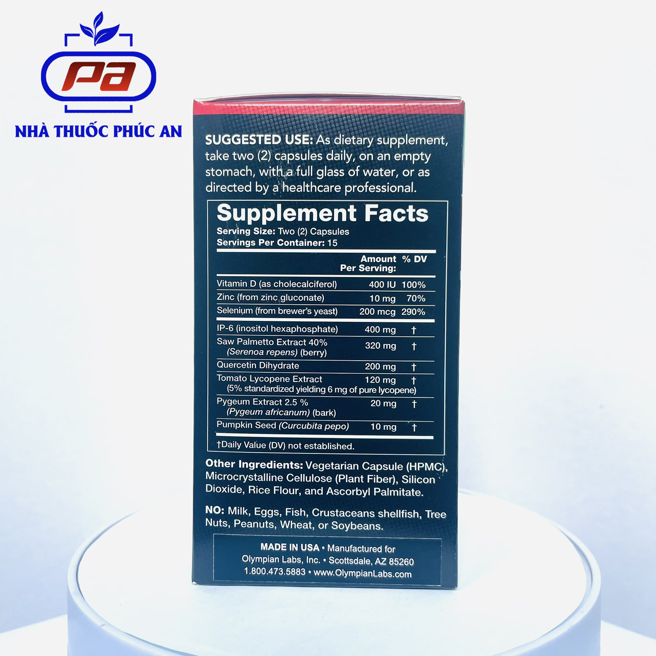- Các sản phẩm của Olympian Labs nói chung và Prosplex for Men nói riêng đã được kiểm nghiệm và xác nhận đạt tiêu chuẩn GLUTEN FREE (Không chứa protein có hại Gluten); ALLERGEN FREE (Không chứa các chất gây dị ứng); NON - GMO (không chứa chất biến đổi gen) và VEGETARIAN (Phù hợp cho những người ăn chay).