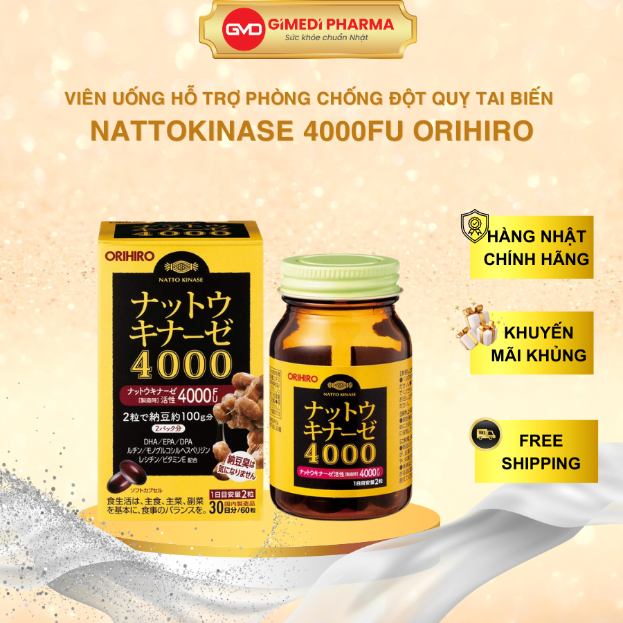 Viên Uống Natto Kinase 4000FU Orihiro 60 Viên Nhật Bản Hỗ Trợ Phòng Chống Đột Quỵ Tai Biến
