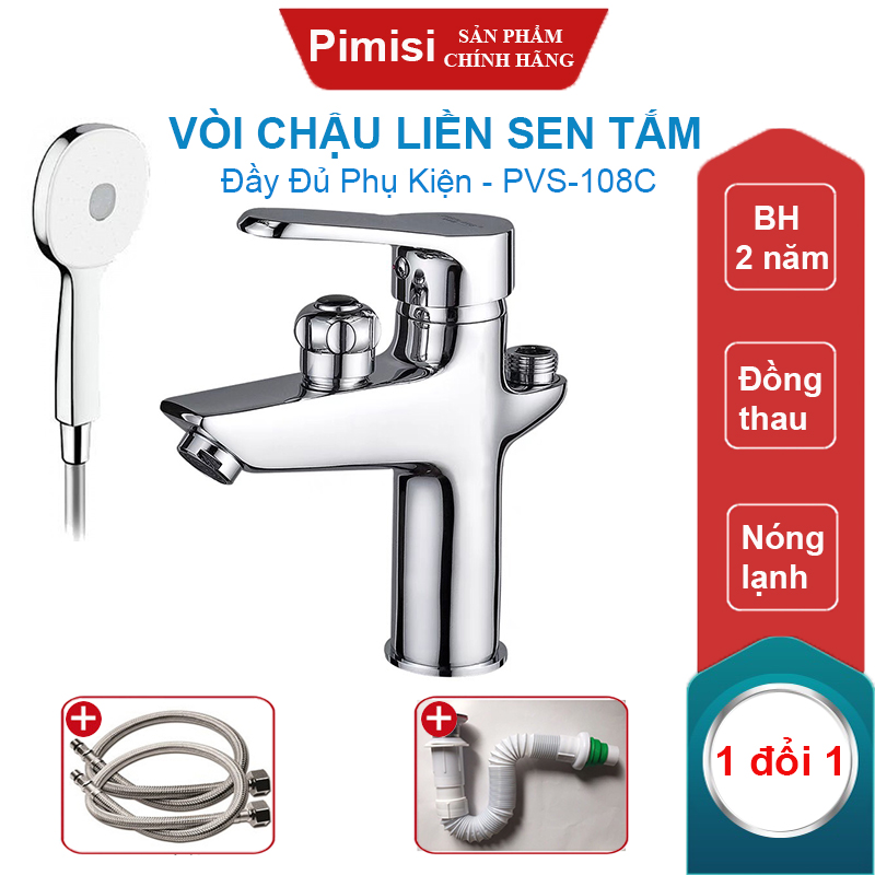 - Tên sản phẩm: Vòi chậu liền sen Pimisi PVS-108C nóng lạnh.