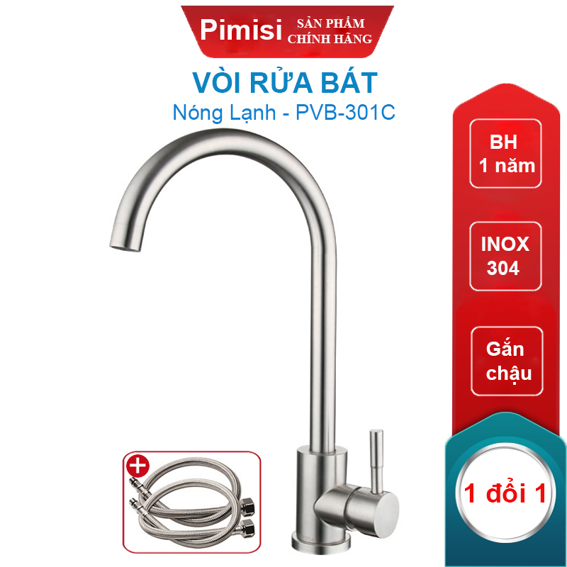 - Tên sản phẩm: Vòi rửa bát nóng lạnh inox 304 Pimisi PVB-301C.